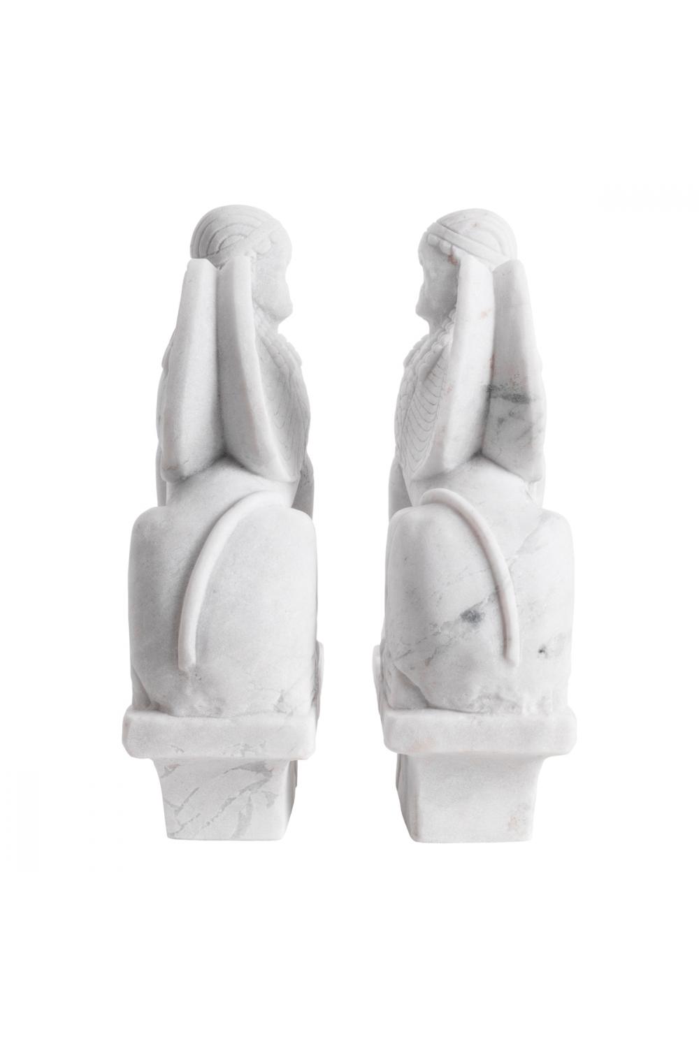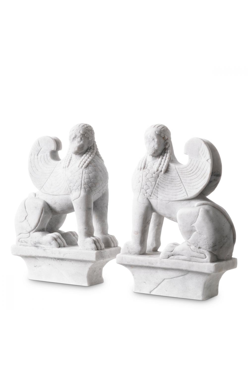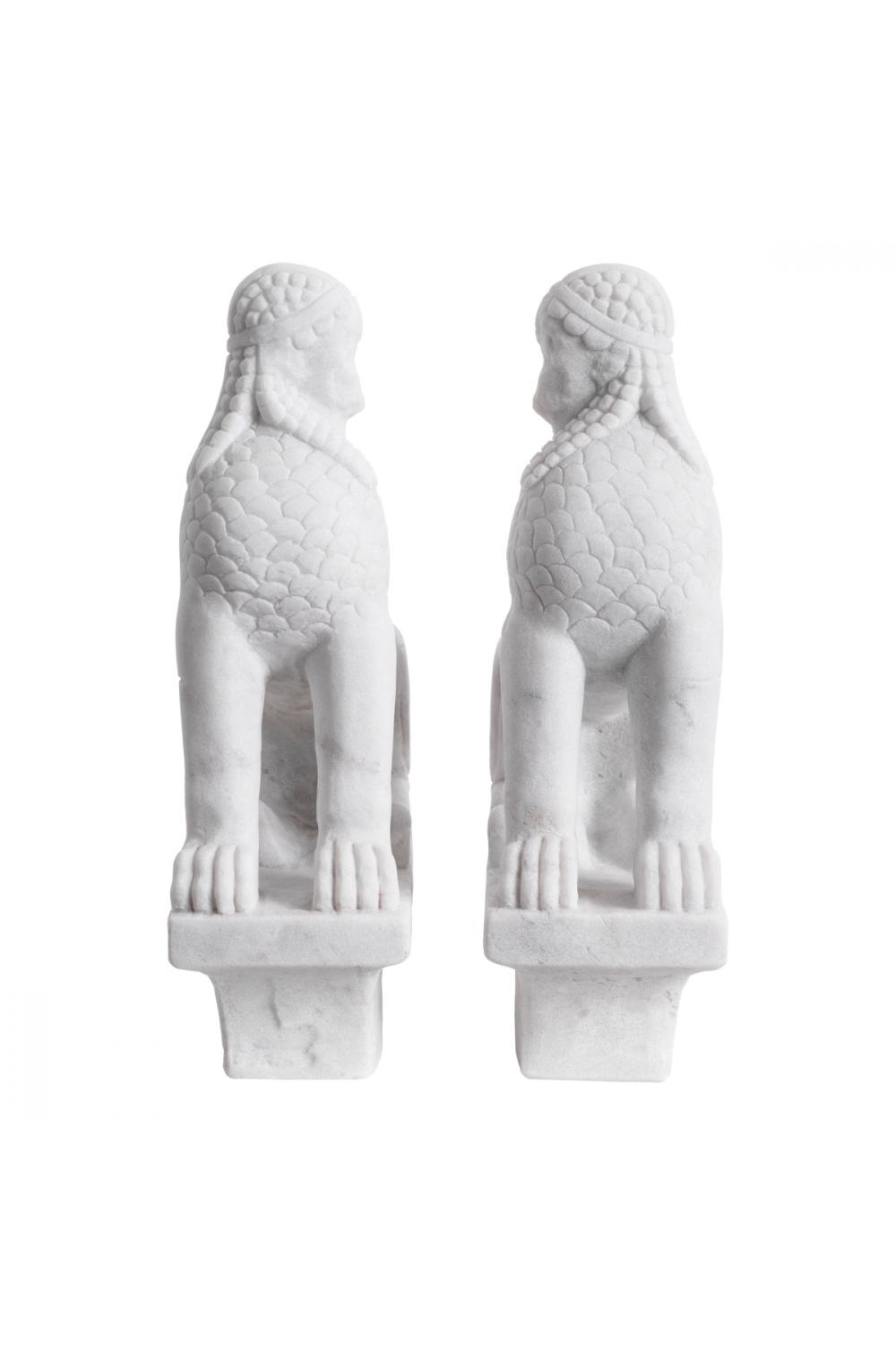 Aegyra Marble Sphinx Set – Handcarved White Marble Pair