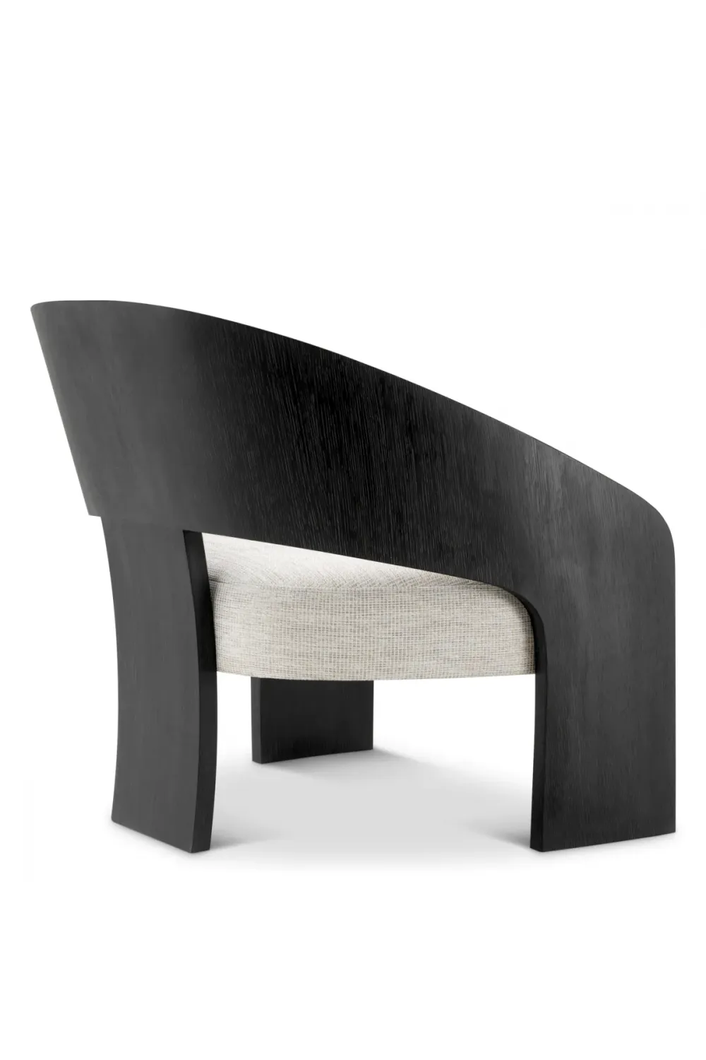 Handcrafted luxury chair in charcoal grey oak veneer and natural linen