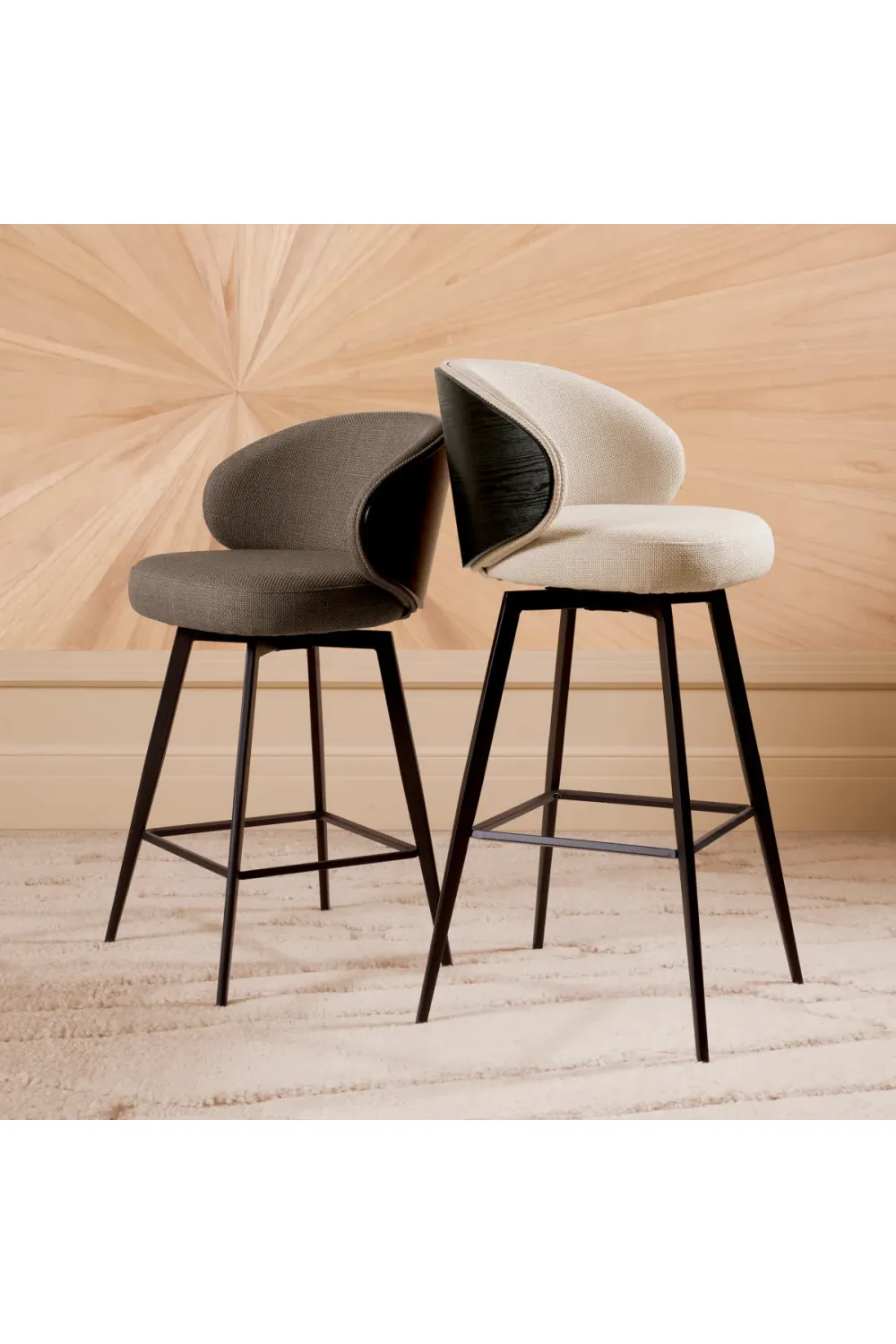 Elegant and contemporary, the Sabino Bar Stool combines comfort and sophistication. Featuring a soft beige fabric seat, a rich walnut curved backrest, and sleek black legs, it offers both luxury and durability for modern interiors.