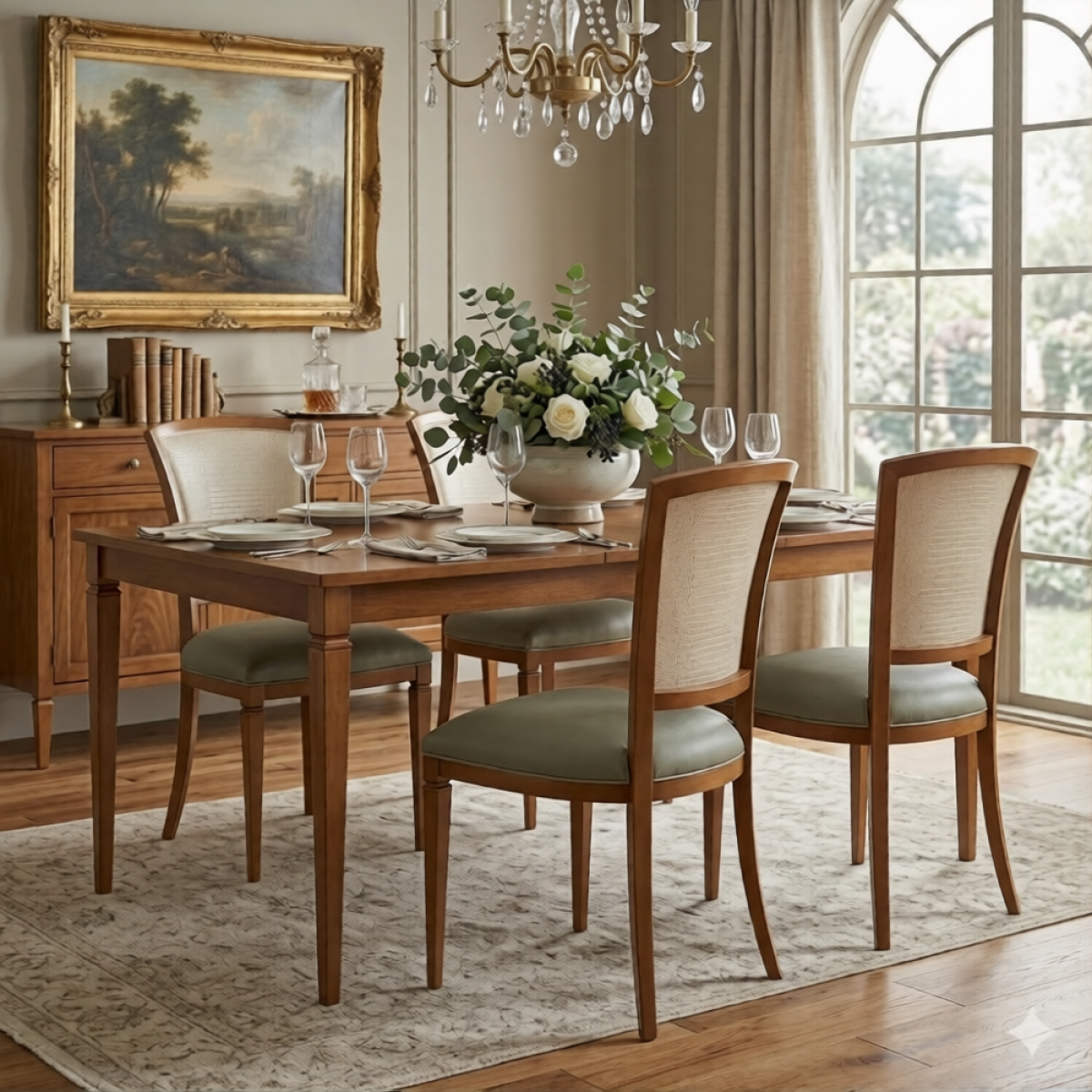 Pair this refined seating with a luxury dining table to create a harmonious and sophisticated dining environment. The warm walnut frame and neutral beige upholstery complement marble, wood, or glass surfaces effortlessly. Whether styled in formal dining rooms or upscale hospitality interiors, this chair enhances the space with timeless European elegance and comfort.