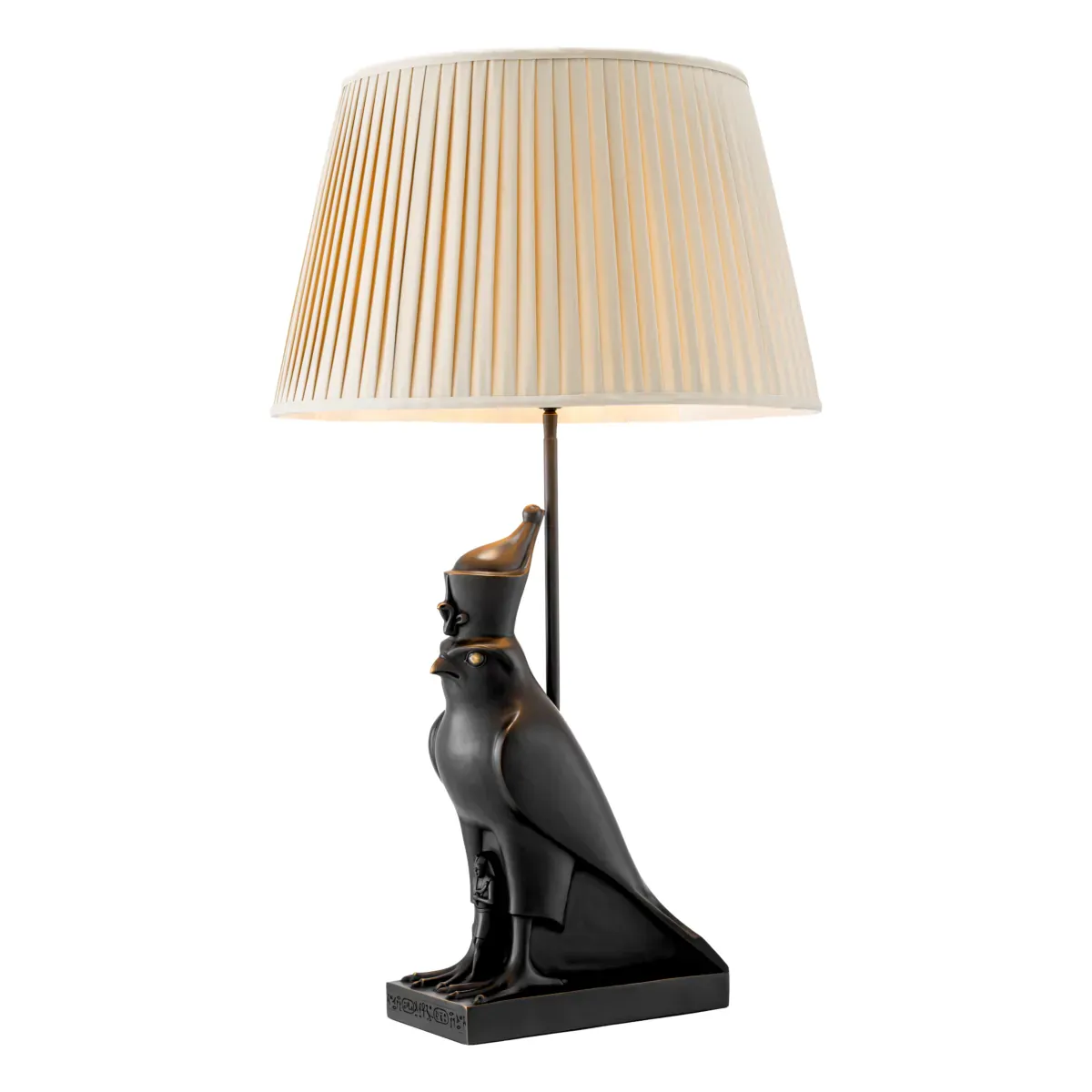Black falcon bird base design luxury table lamp with beige pleated shade by Luxury Group International