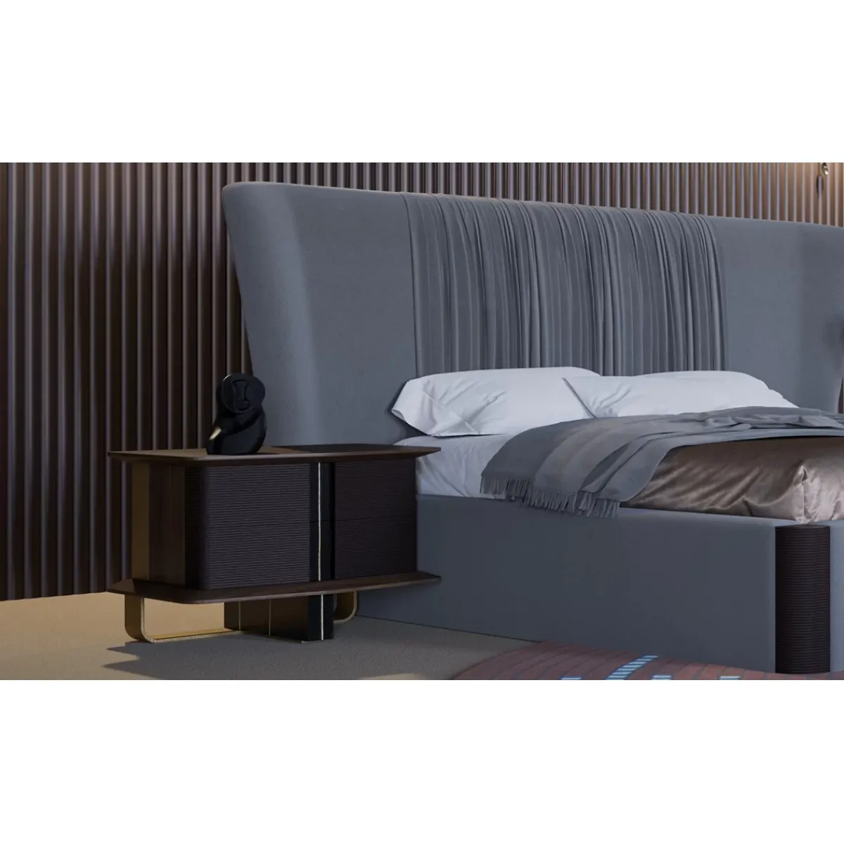 This elegant luxury nightstand complements modern bedroom furniture and sophisticated interior settings. Its sculptural silhouette, refined materials, and premium craftsmanship make it an ideal luxury bedside table for contemporary European homes and luxury hotel suites. Designed to elevate interiors effortlessly, this piece delivers both functionality and high-end visual appeal with timeless luxury presence. Pairs beautifully with the Grey Headboard Luxury Bed to create a cohesive and sophisticated luxury bedroom setting. Explore more elegant designs in our Luxury Nightstand Collection to find the perfect match for your refined bedroom interior.