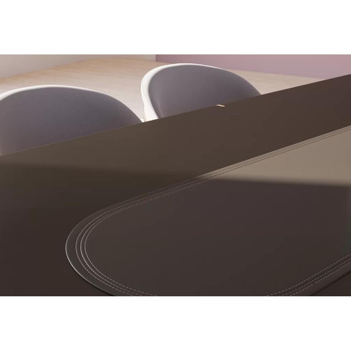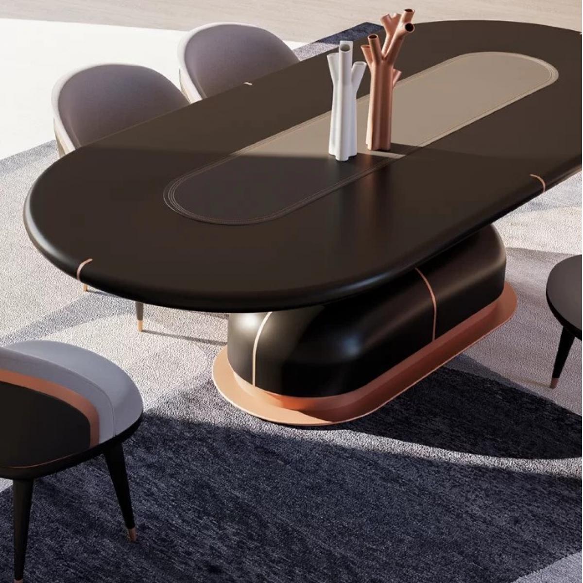 Black Oval Faux Leather Top Luxury Dining Table with Copper Finish Base by Luxury Group International