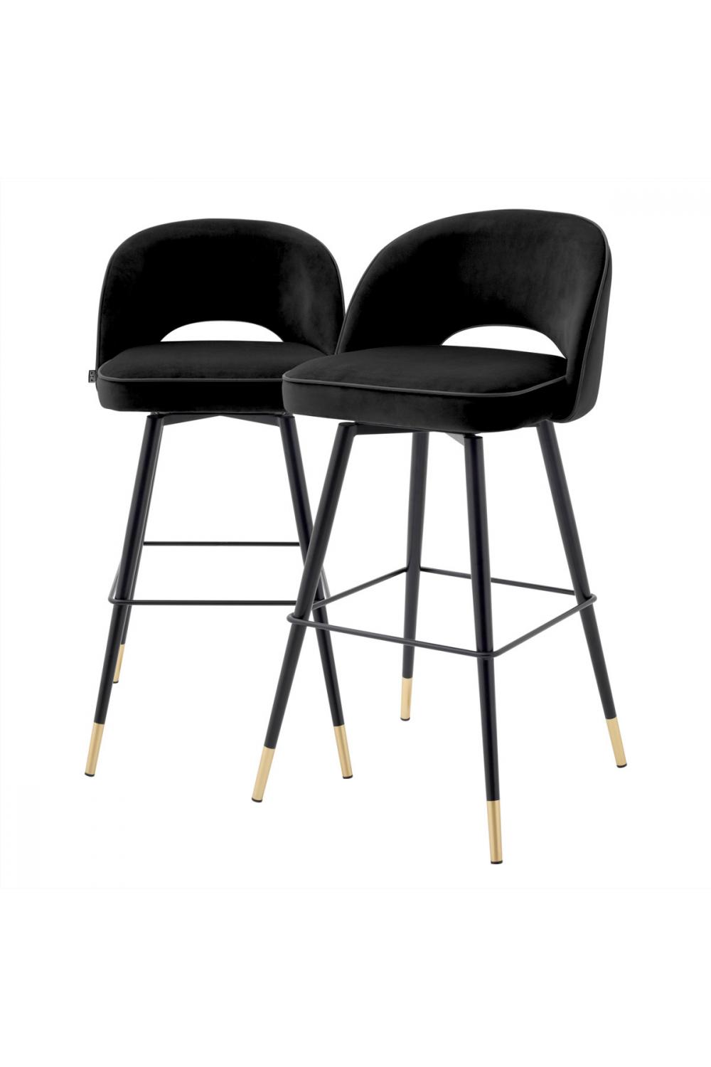 The Cliff Bar Stool Collection elevates modern entertaining spaces with its sculptural silhouette and refined material choices. Each set of two features black tapered legs with elegant brass caps and a contoured open-back design. Available in a selection of premium fabrics—from sumptuous velvets to soft bouclé—the Cliff stool blends comfort, craftsmanship, and cosmopolitan sophistication.