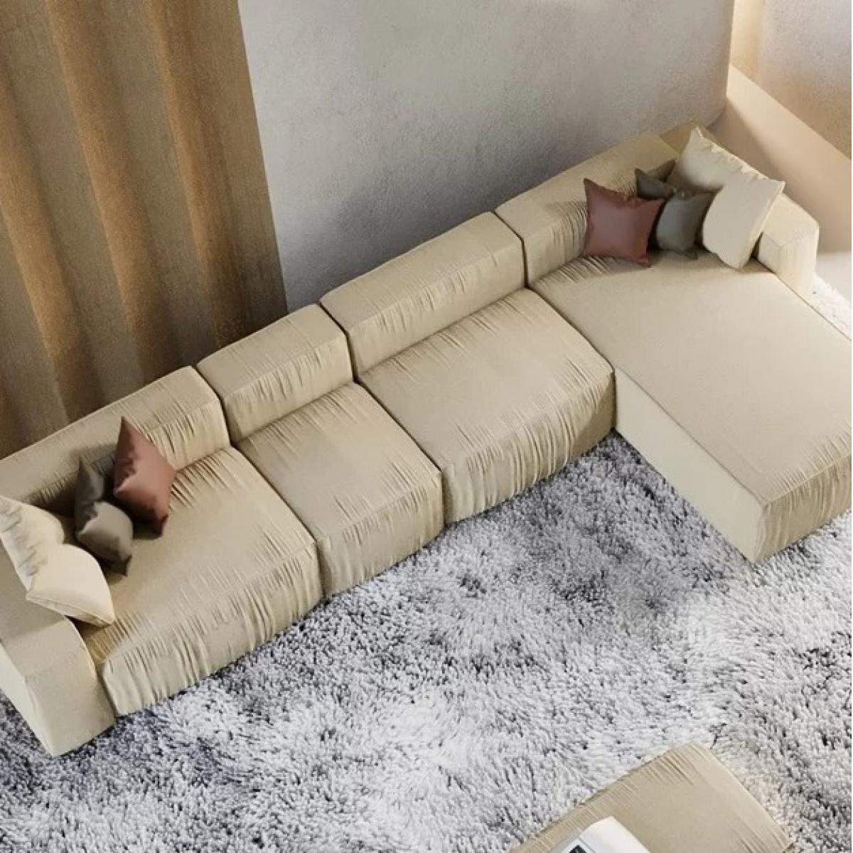 Cream Modern L-Shaped Deep Sectional Sofa Furniture Set for Living Room Lounge-Luxury sofa represents modern European luxury with deep seating comfort and elegant modular design. Crafted with premium beige upholstery, this sectional sofa features a spacious L-shaped configuration and extended chaise seating that creates a relaxed lounge-style experience. The clean architectural silhouette combined with plush cushioning delivers exceptional comfort while maintaining a refined contemporary appearance. Designed for luxury living rooms and sophisticated interiors, this Modern L-Shaped Deep Sectional Sofa Furniture Set for Living Room Lounge-Luxury sofa offers both visual elegance and functional comfort.