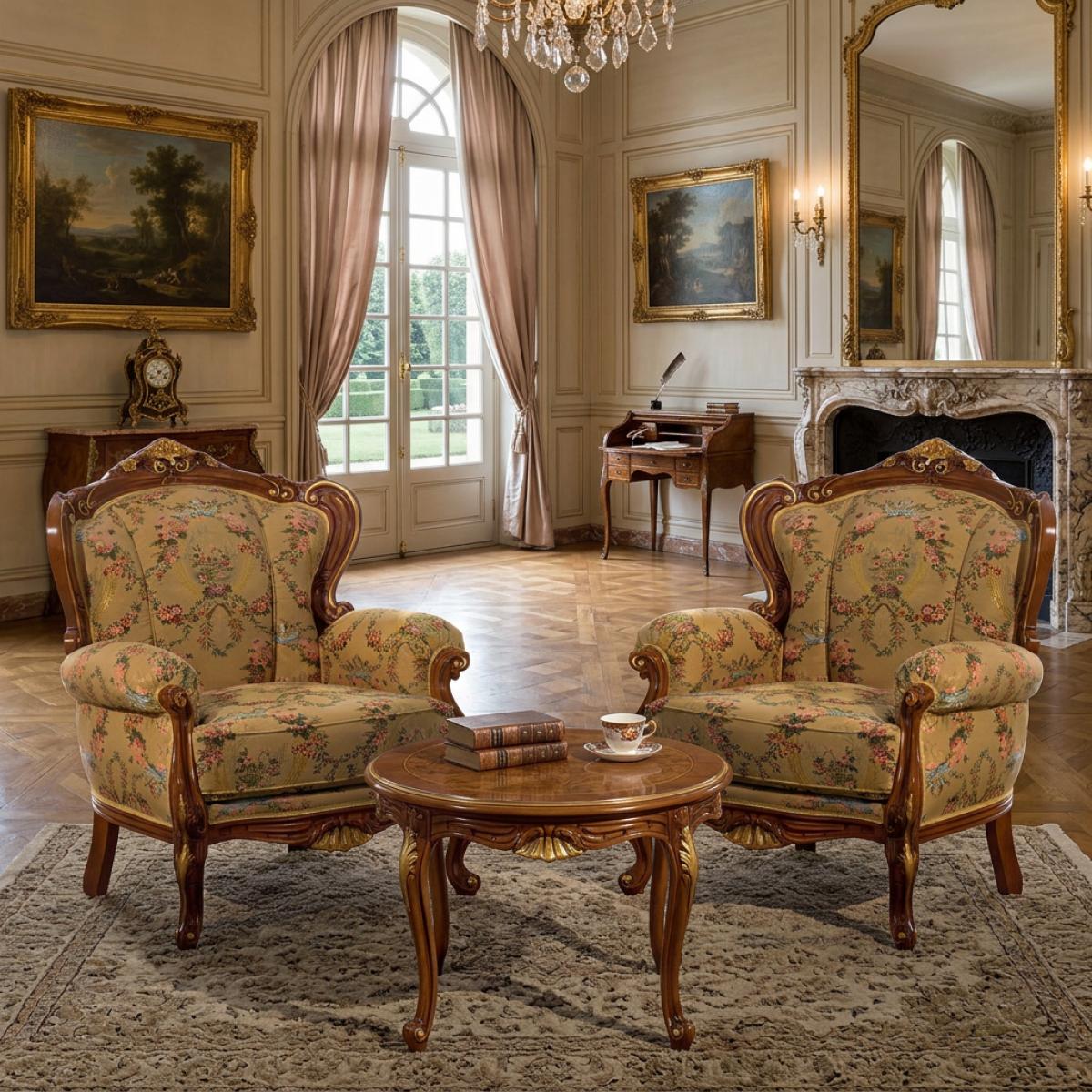 Vervollständigen Sie Ihre Einrichtung mit unseren luxuriösen Couchtischen, um einen eleganten und ausgewogenen Wohnbereich zu schaffen. Dieser barocke Sessel bereichert luxuriöse Sessel für das Wohnzimmer mit zeitloser europäischer Eleganz und erstklassigem Sitzkomfort.