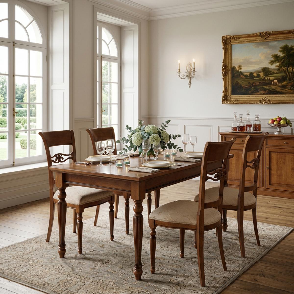 Barockes Luxus-Esszimmer-Set aus Holz — 1 rechteckiger Tisch & 4 Esszimmerstühle - Barockes Esszimmer-Set von Luxury Group International