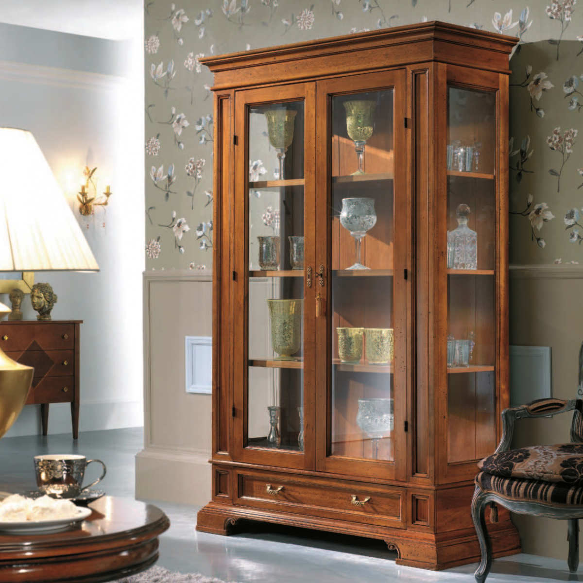 Barockes Luxus-Vitrinenschrank aus Holz mit Doppeltür und Schubladenbasis – Barockmöbel von Luxury Group International
