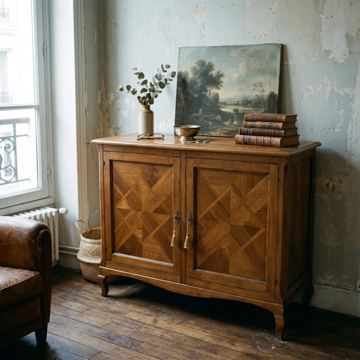 - Klassisches barockes Sideboard mit geometrischen Intarsientüren
