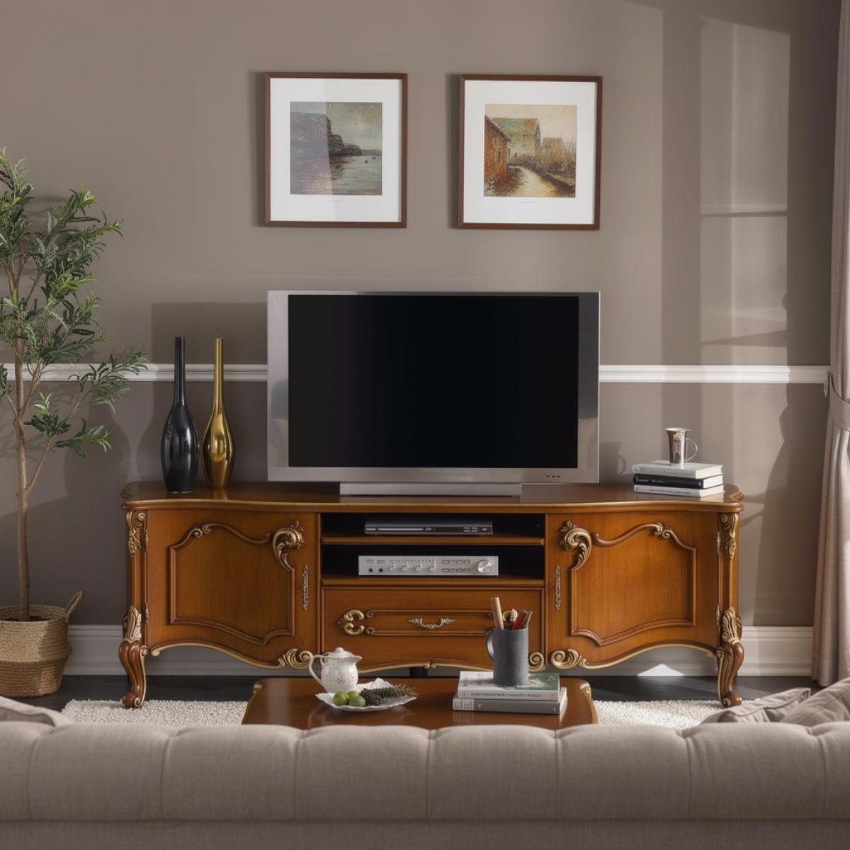 - Elegantes Luxus-Fernsehmöbel mit handgeschnitzten barocken Details