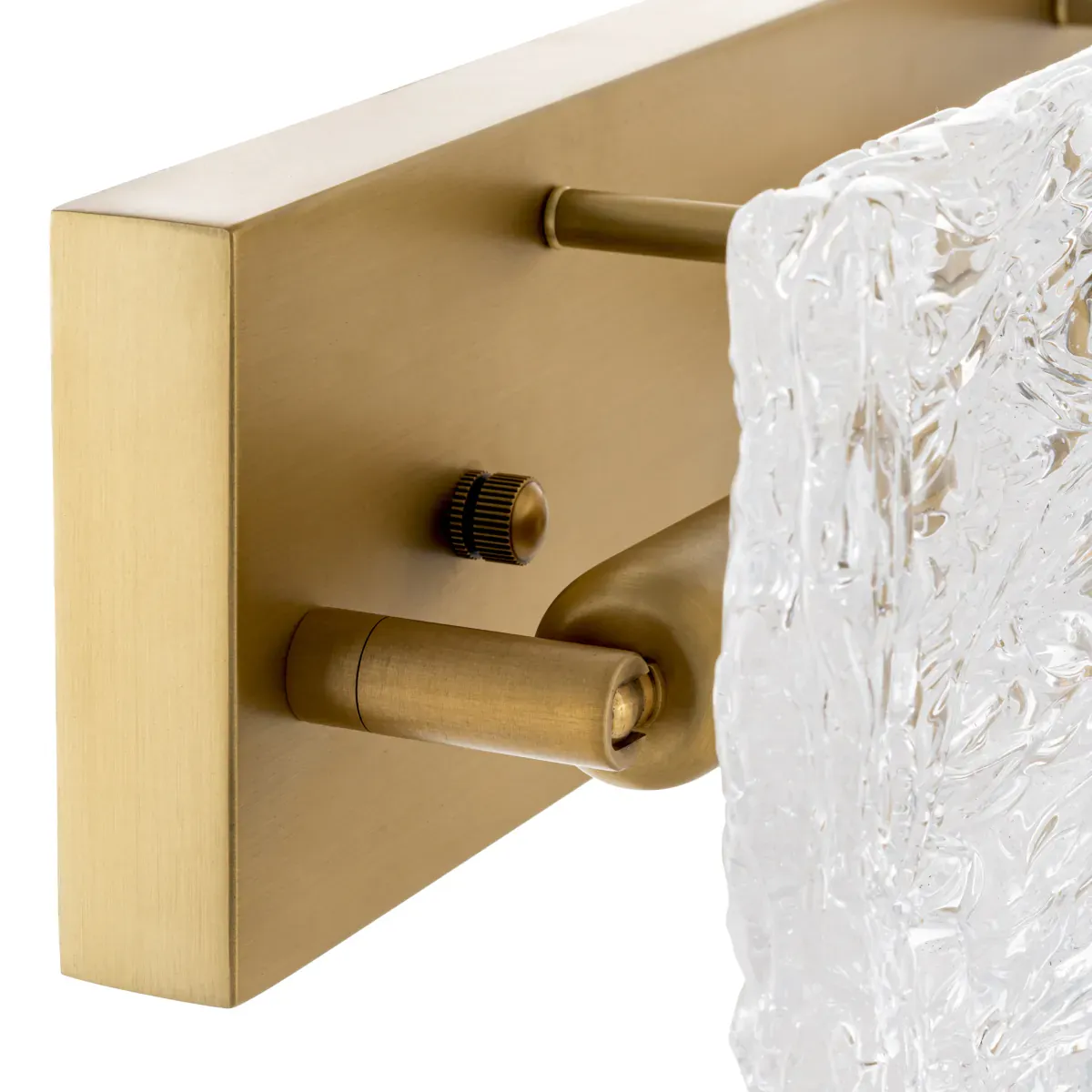 Goldene rechteckige Luxus-Wandleuchte mit antiker Messingoberfläche und handgefertigtem Glas von Luxury Group International