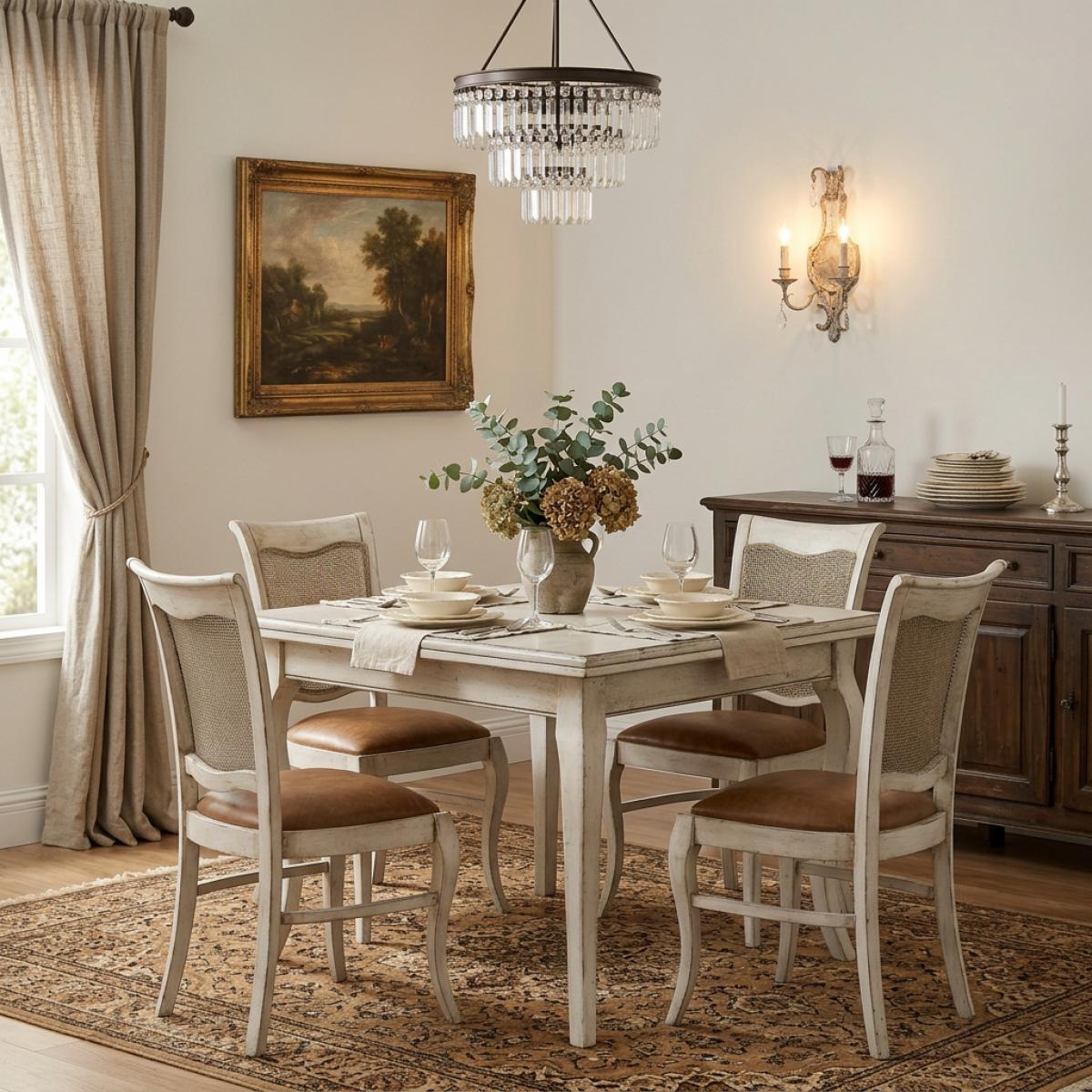- Elegantes Luxus-Esszimmer-Set in Elfenbein-Finish