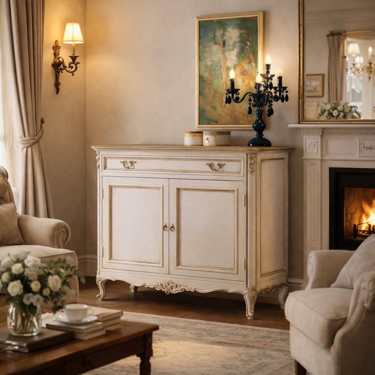 Elfenbeinfarbenes Barock Luxus Sideboard mit oberer Schublade & 2-türigem Aufbewahrungsschrank – Barockmöbel von Luxury Group International