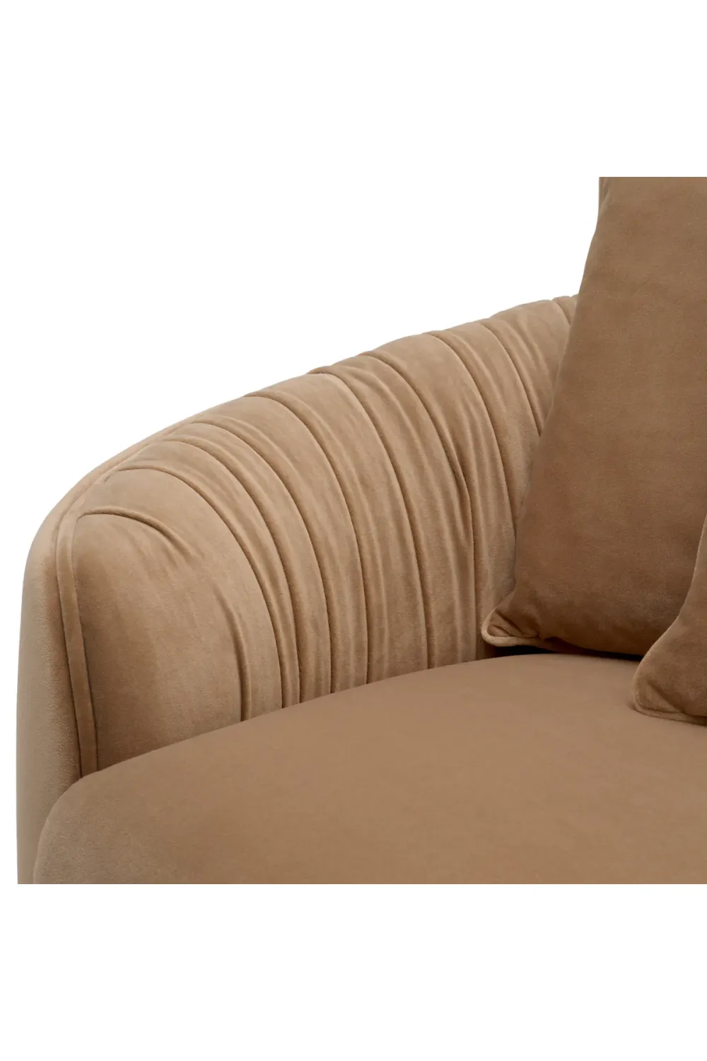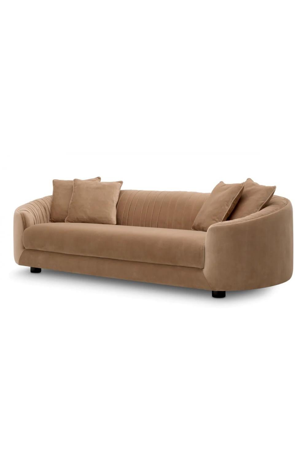 Luxus Amaro Camel Samtsofa mit skulptierten Kurven und schwarzen Füßen von Luxury Group International