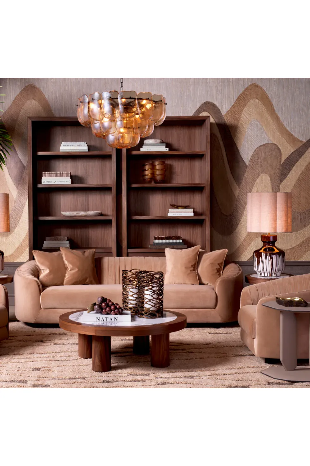 Entdecken Sie zeitlose Eleganz mit diesem Luxusofa, bezogen mit üppigem Amaro-Kamelvelours. Ein raffiniertes Amaro-Kamelsofa, entworfen, um anspruchsvolle europäische Innenräume zu bereichern.