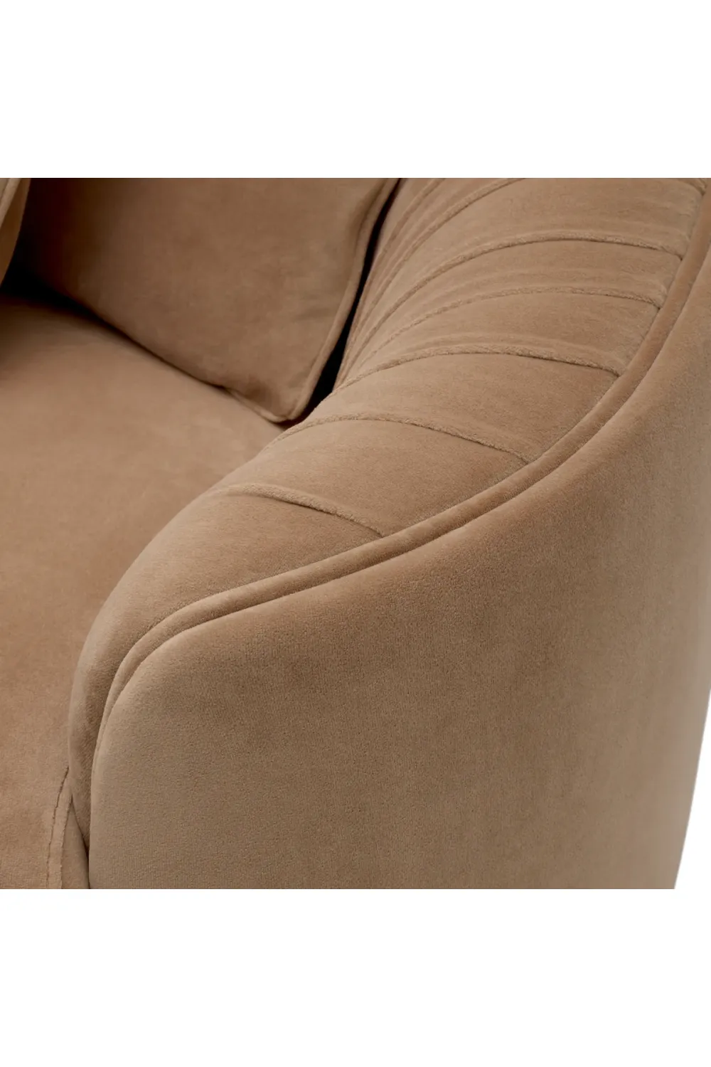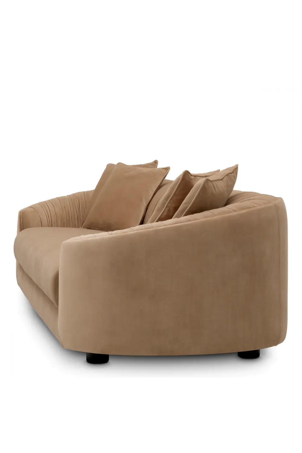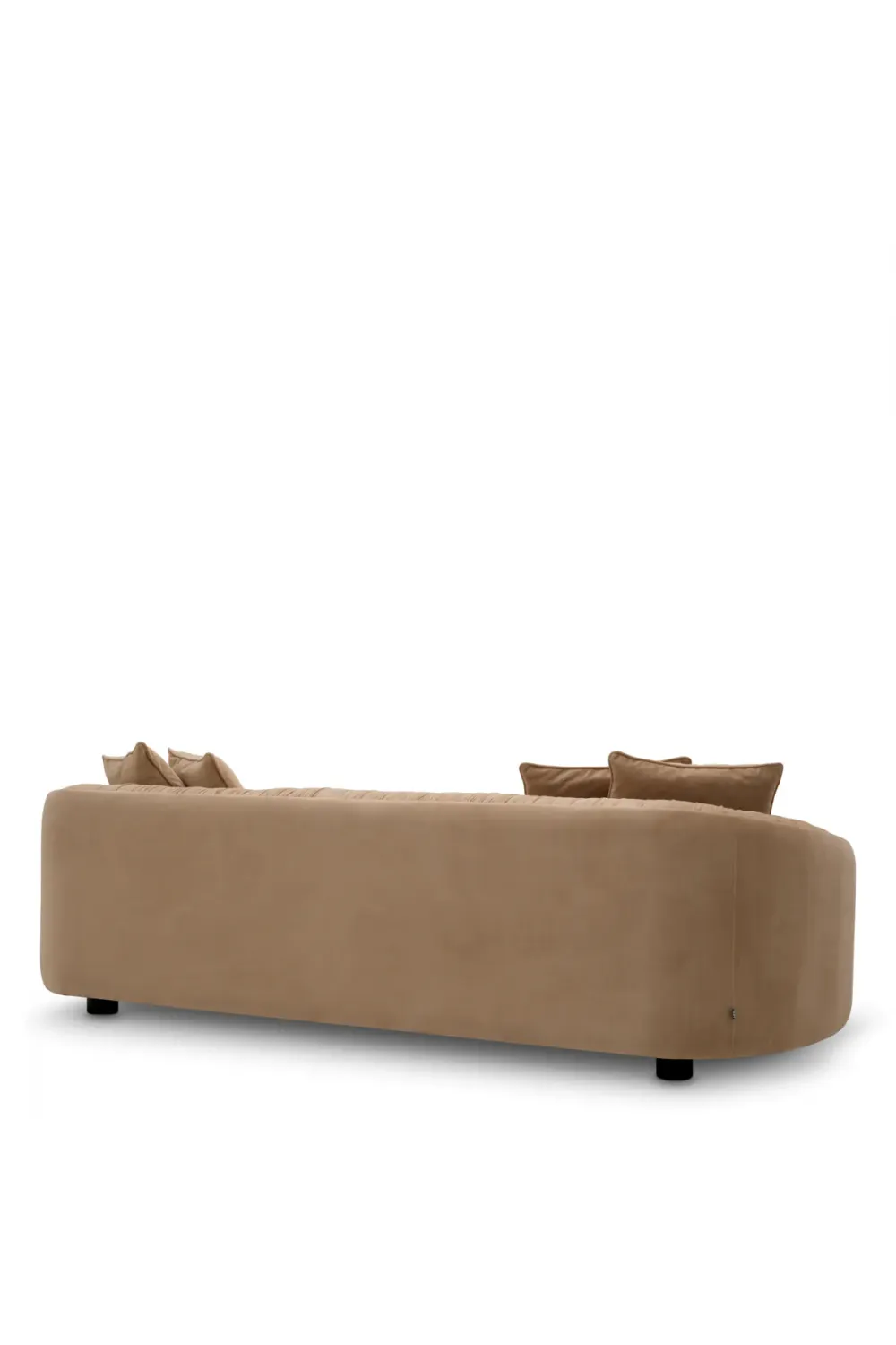Das Design zeichnet sich durch seine sanft geformten Kurven, abgerundeten Armlehnen und elegant konturierten Rückenlehne aus, die eine harmonische Silhouette schaffen, die einladend und zugleich architektonisch wirkt. Vertikale Kanalverzierungen entlang der Rückenlehne unterstreichen subtil den maßgeschneiderten Charakter, während die großzügige Sitztiefe ein tief entspannendes Sitzgefühl gewährleistet. Dieses Luxusofa ist ebenso visuell beeindruckend wie genussvoll komfortabel.