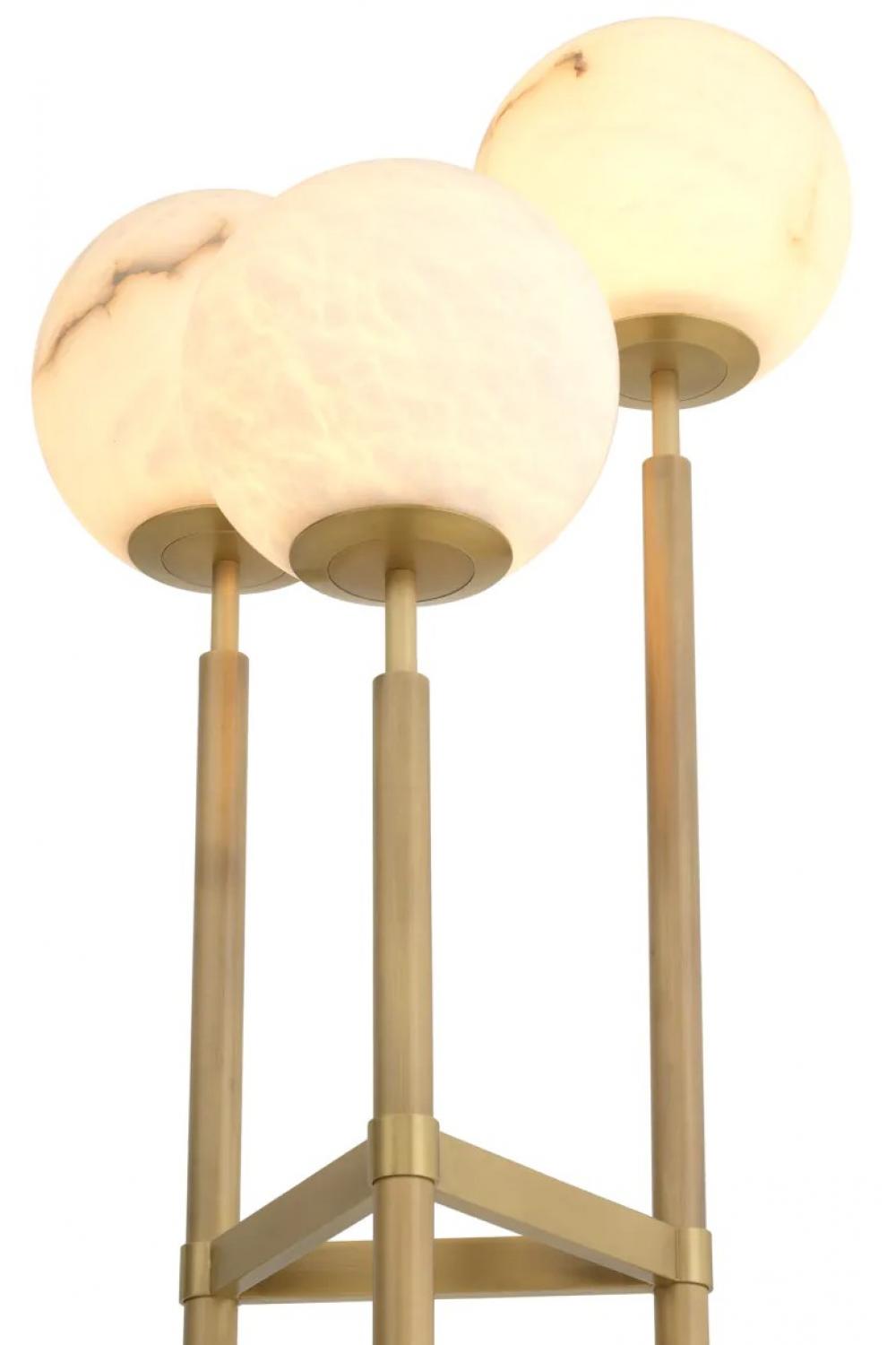 Erheben Sie Ihr Zuhause mit dieser luxuriösen Stehlampe, einem Meisterwerk aus Licht und Form. Als erstklassige Art-Deco-Stehlampe verfügt sie über ein markantes Gestell aus antikem Messing, das leuchtende Steinkugeln trägt und so ein anspruchsvolles Finish bietet.