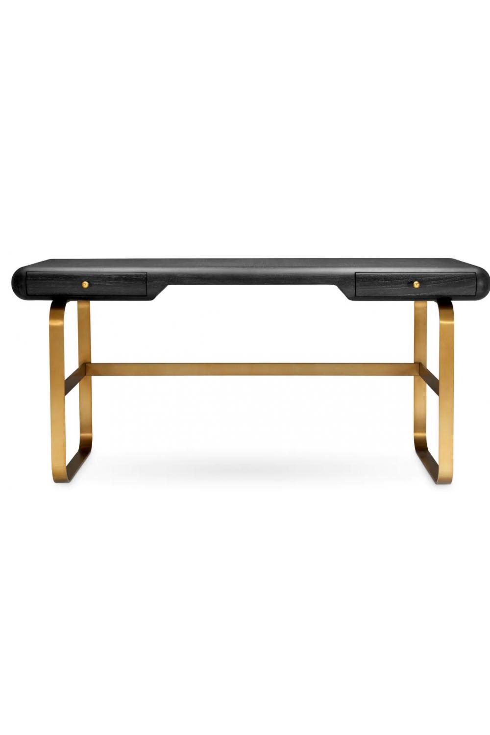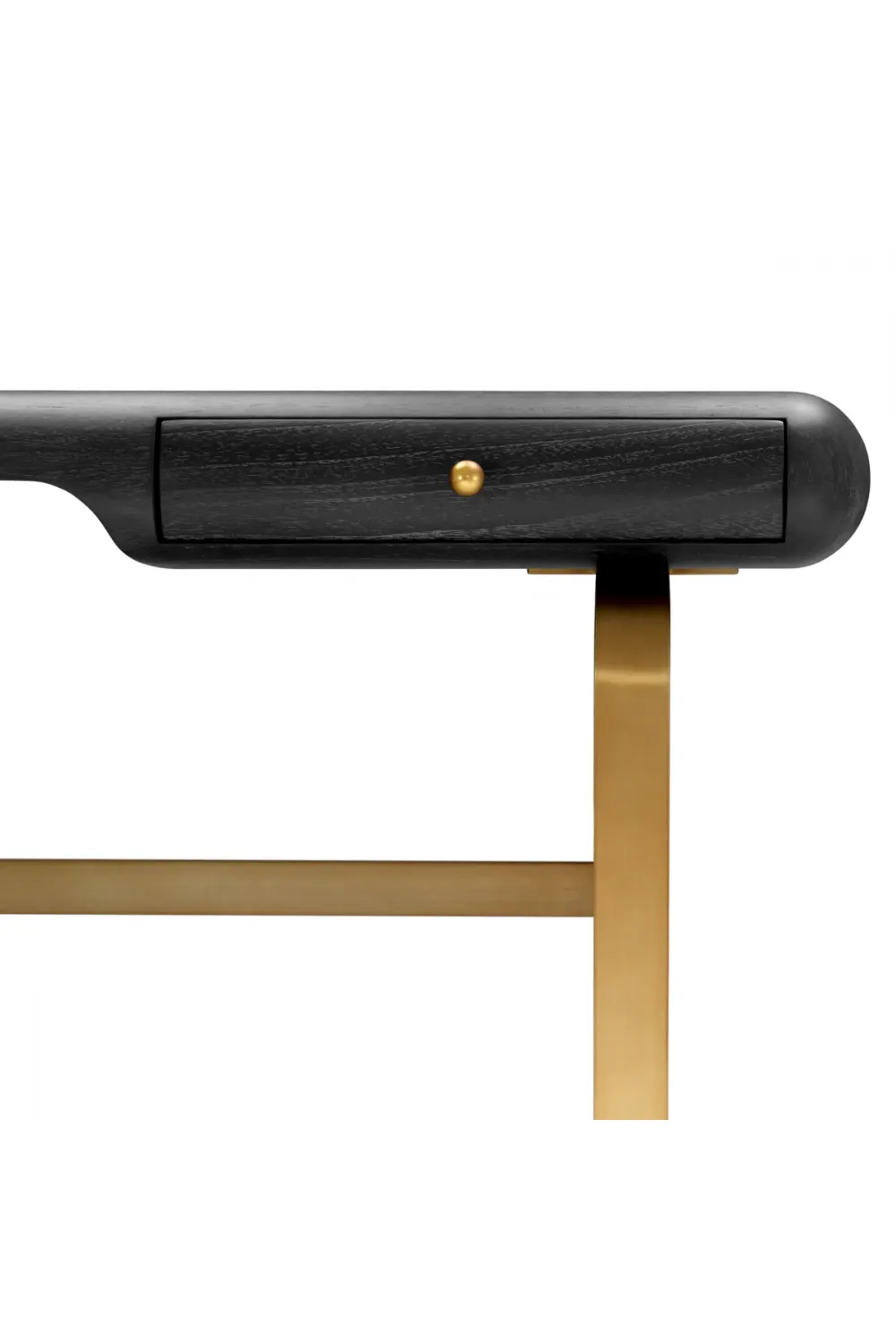 Luxuriöser schwarzer Eichen-Schreibtisch mit rechteckiger Form und Beinen mit Messing-Finish