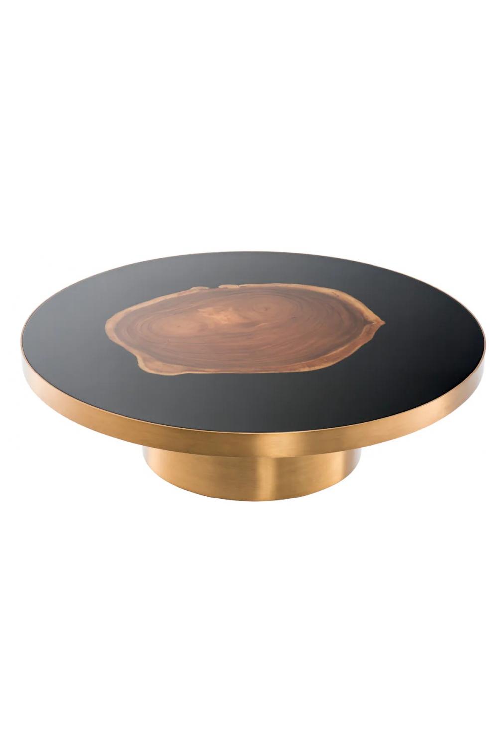 Startseite > Möbel für das Wohnzimmer > Luxuriöse Couchtische > Luxuriöser runder Couchtisch aus schwarzem Glas mit Messingrahmen