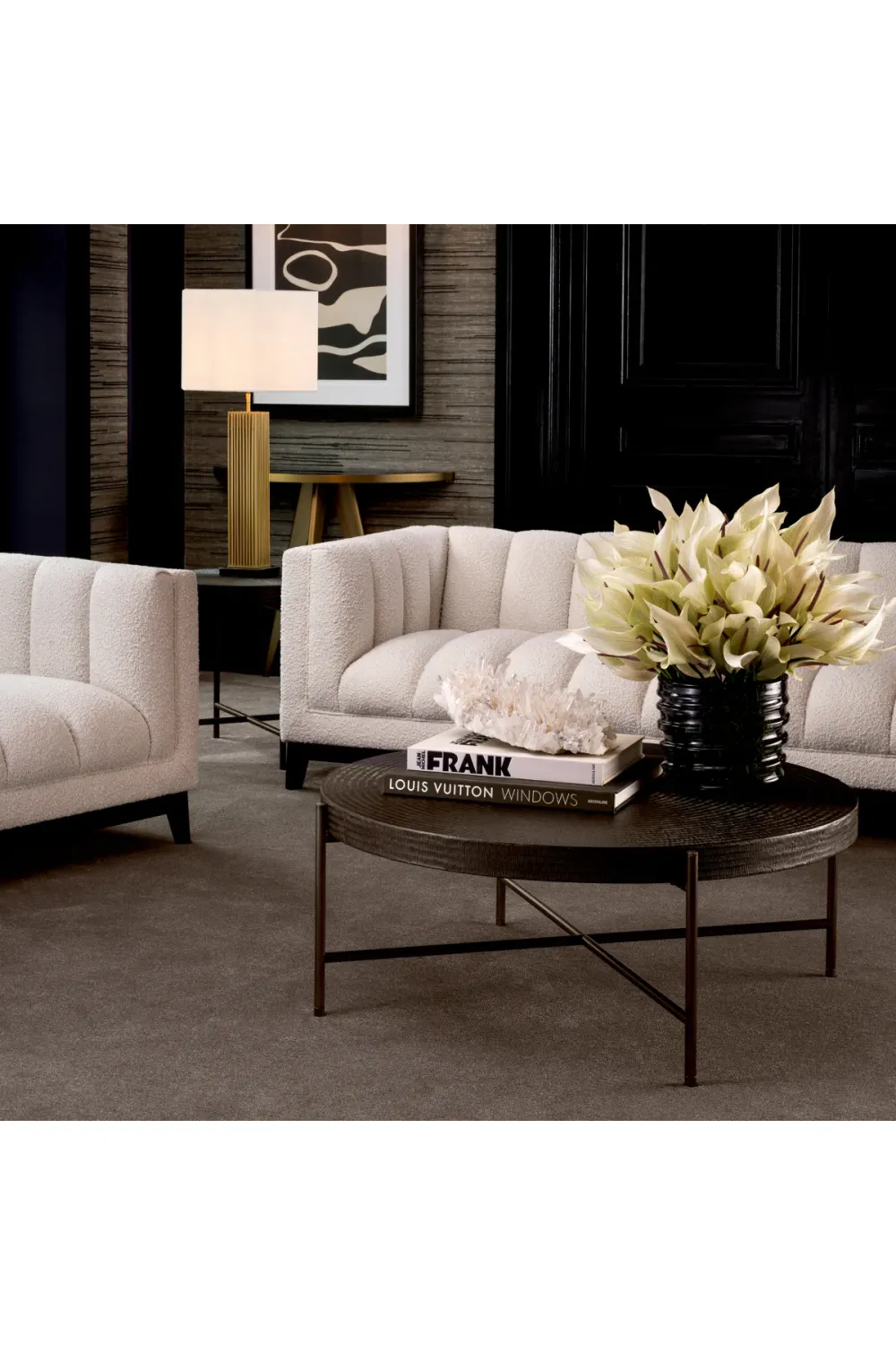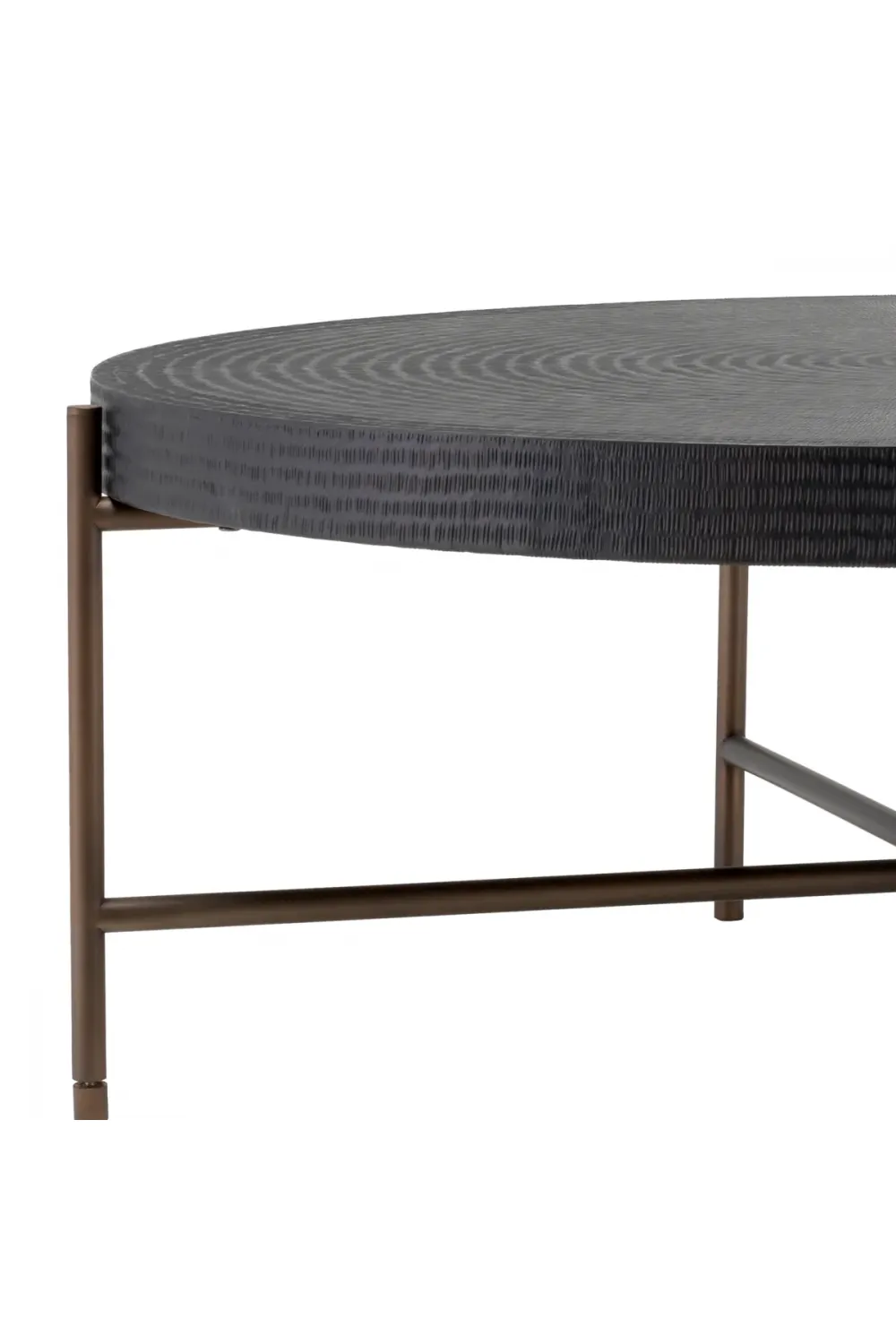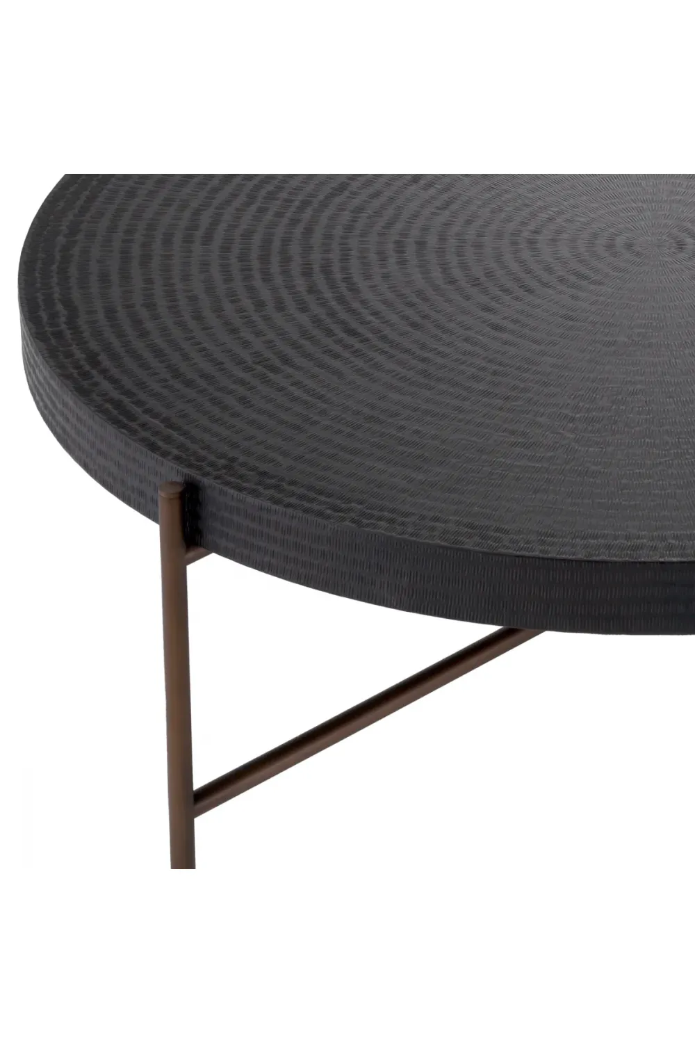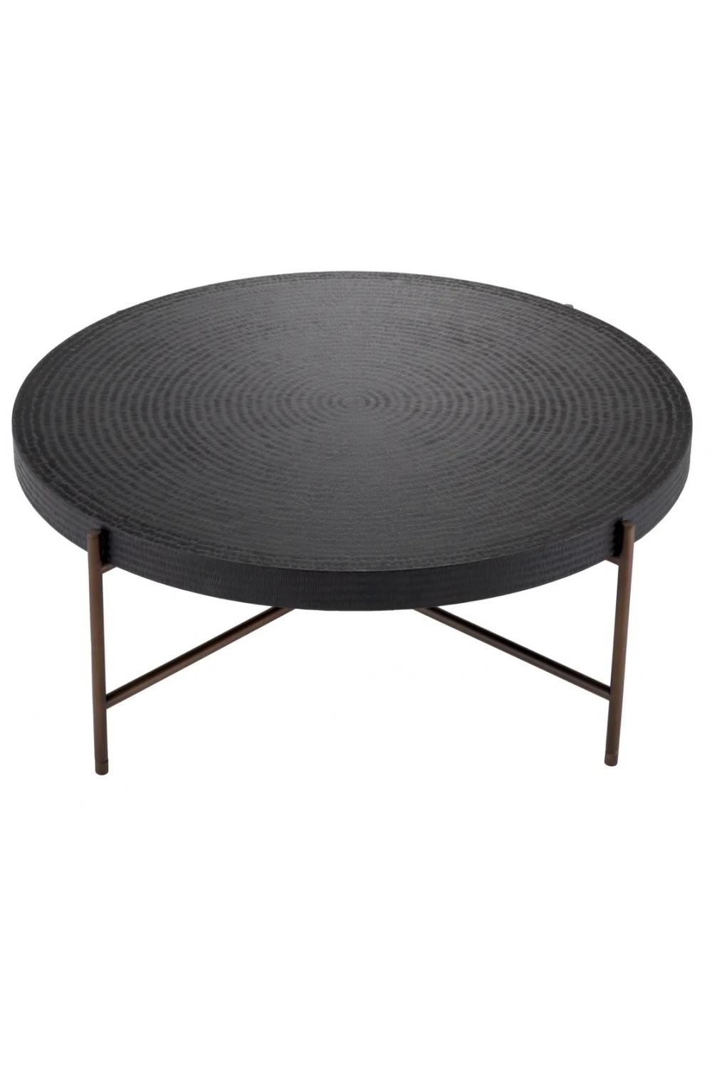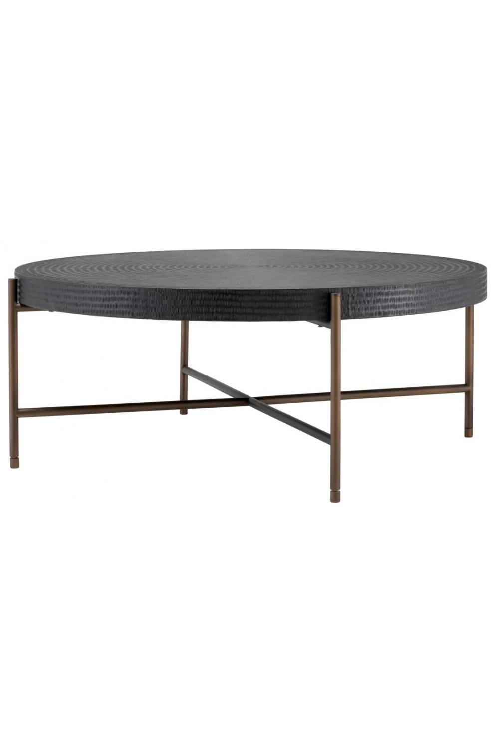 Startseite > Möbel für das Wohnzimmer > Luxuriöse Couchtische > Luxuriöser runder Couchtisch mit schwarzem Gunmetal-Finish und bronzefarbenen Beinen