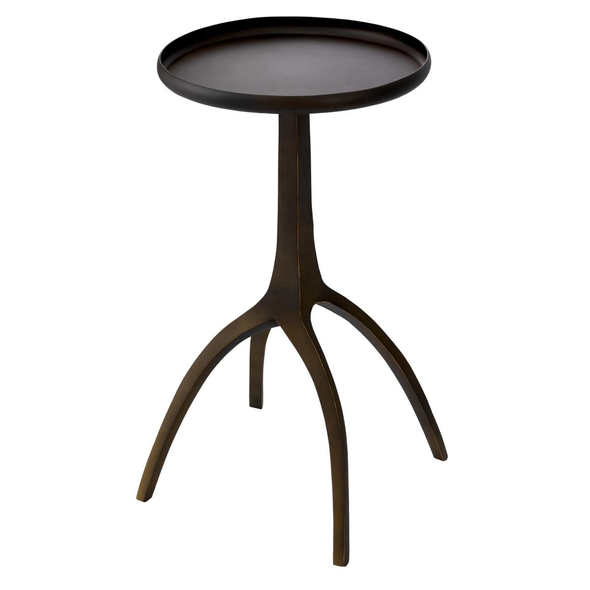 Luxuriöser schwarzer runder Beistelltisch mit erhöhtem Rand und bronzefarbenem Finish, skulpturalem Astfuß von Luxury Group International