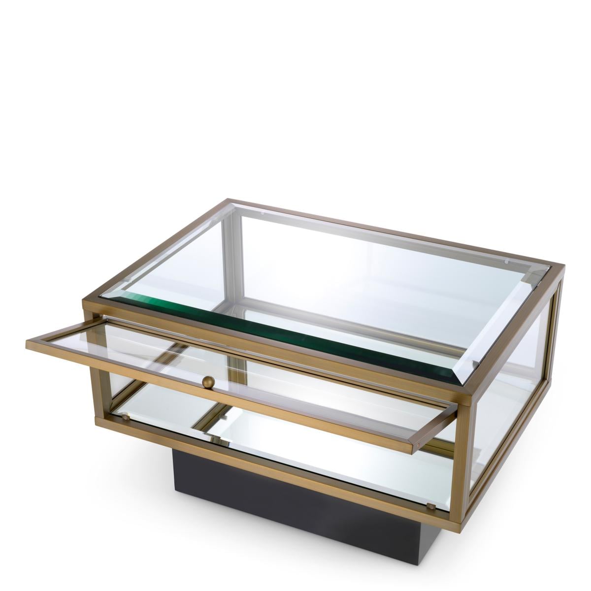 • Luxus rechteckiger Beistelltisch in Messingoptik aus Klar-/Spiegelglas mit Vitrinenstruktur