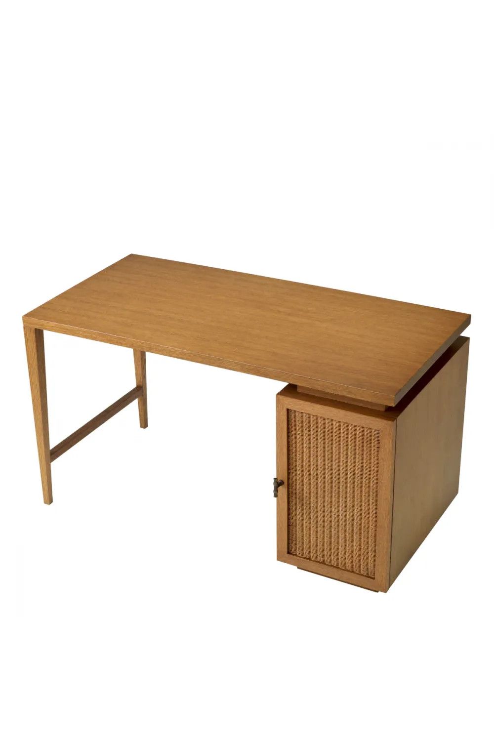 Luxuriöser Schreibtisch aus Karamell-Eichenfurnier & Rattan