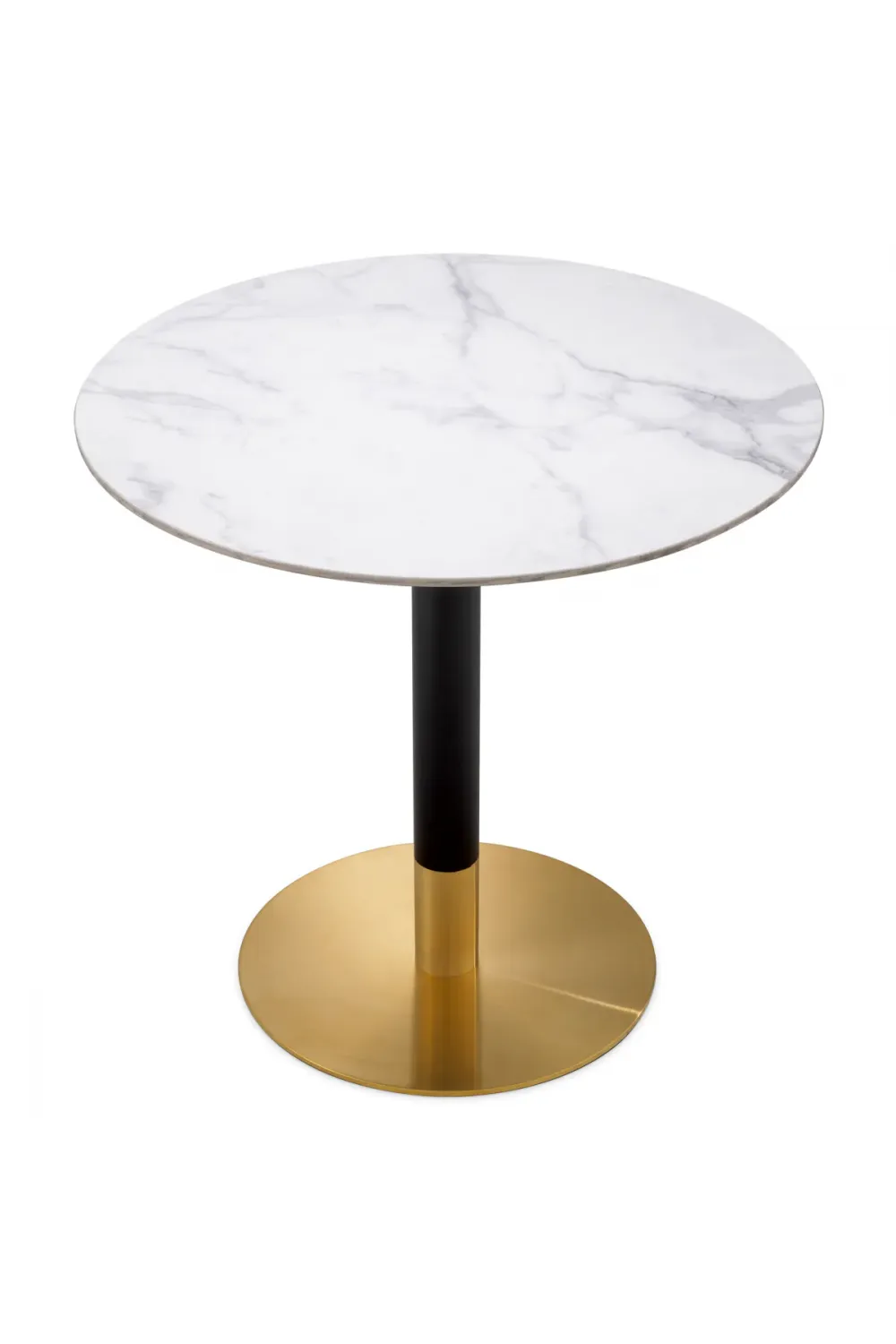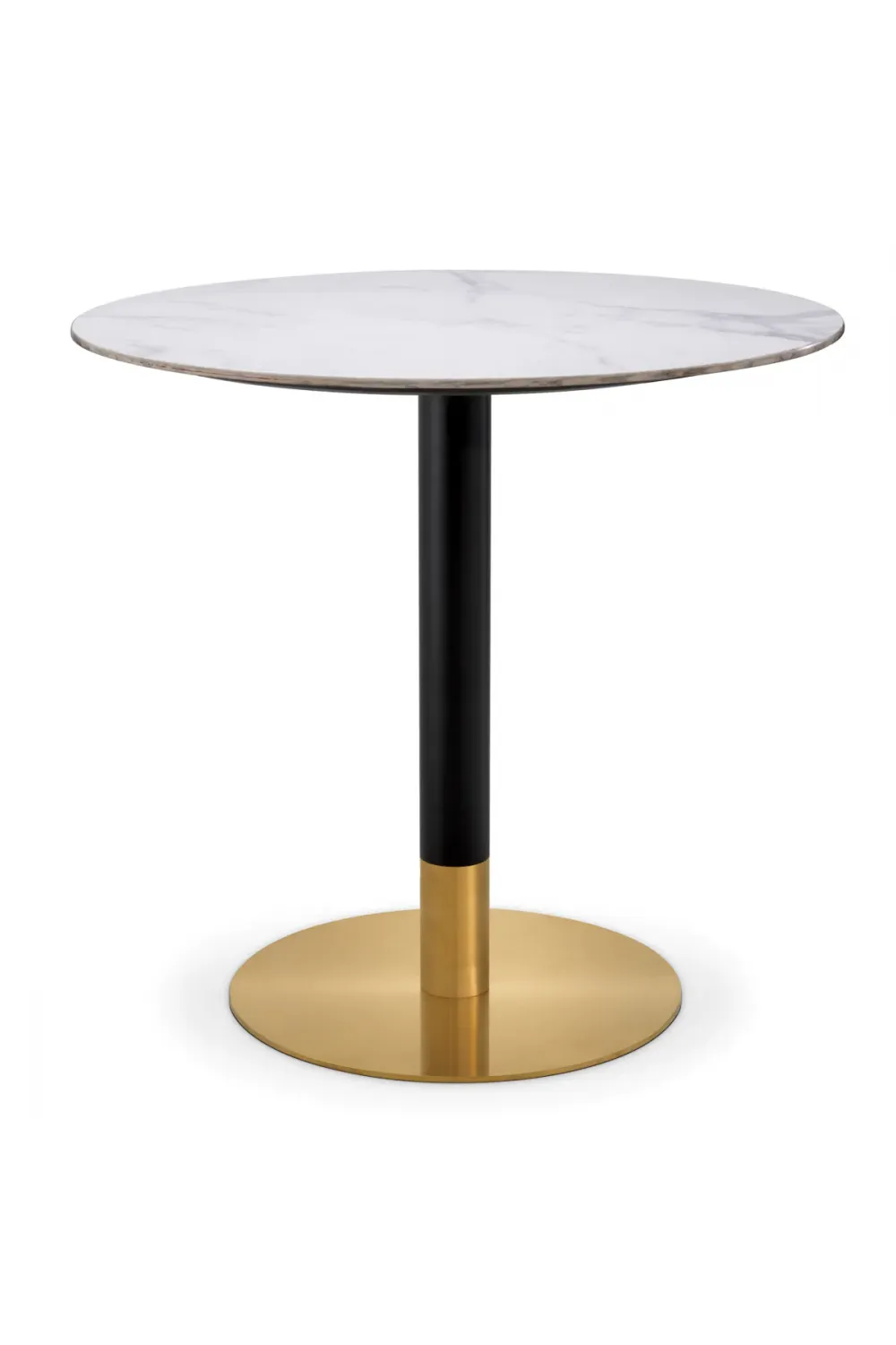 Startseite > Möbel für das Esszimmer > Luxuriöse Esstische > Luxuriöser runder Esstisch aus Keramik mit schwarzem Metall und Messingfuß