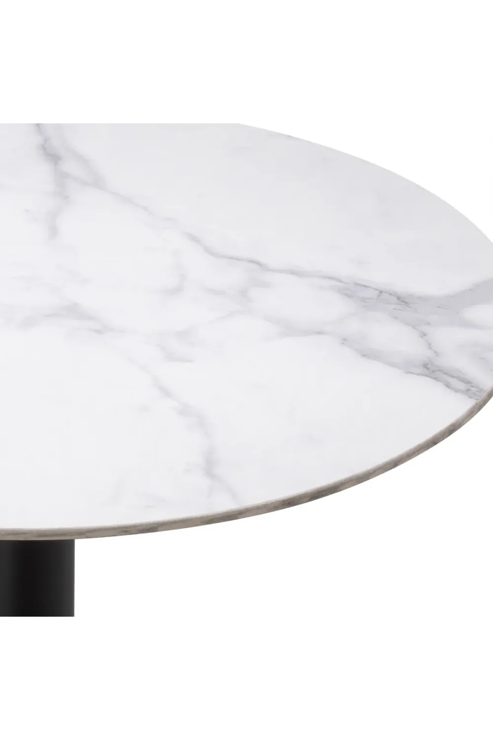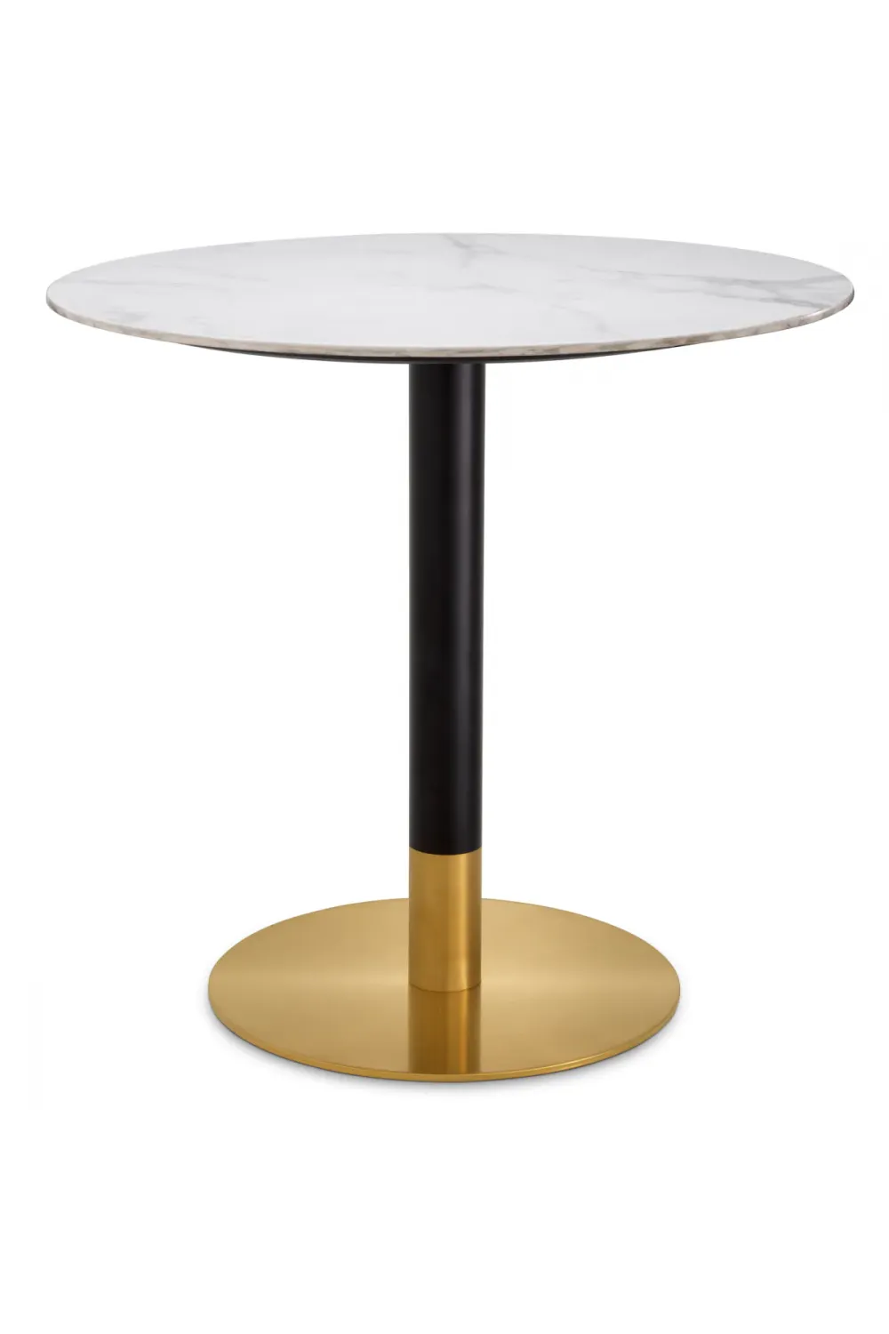 Der Luxury Ceramic Round Top Dining Table With Black Metal & Brass Base ist ein luxuriöser Designertisch, der eine makellose Keramikmarmorplatte mit einem kühnen Metall- und Messingfuß verbindet und so moderne Raffinesse und zeitlose Eleganz in jeden Essbereich bringt