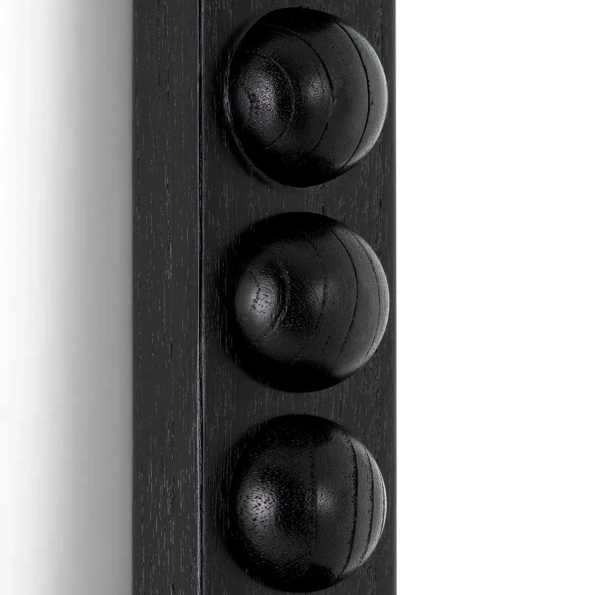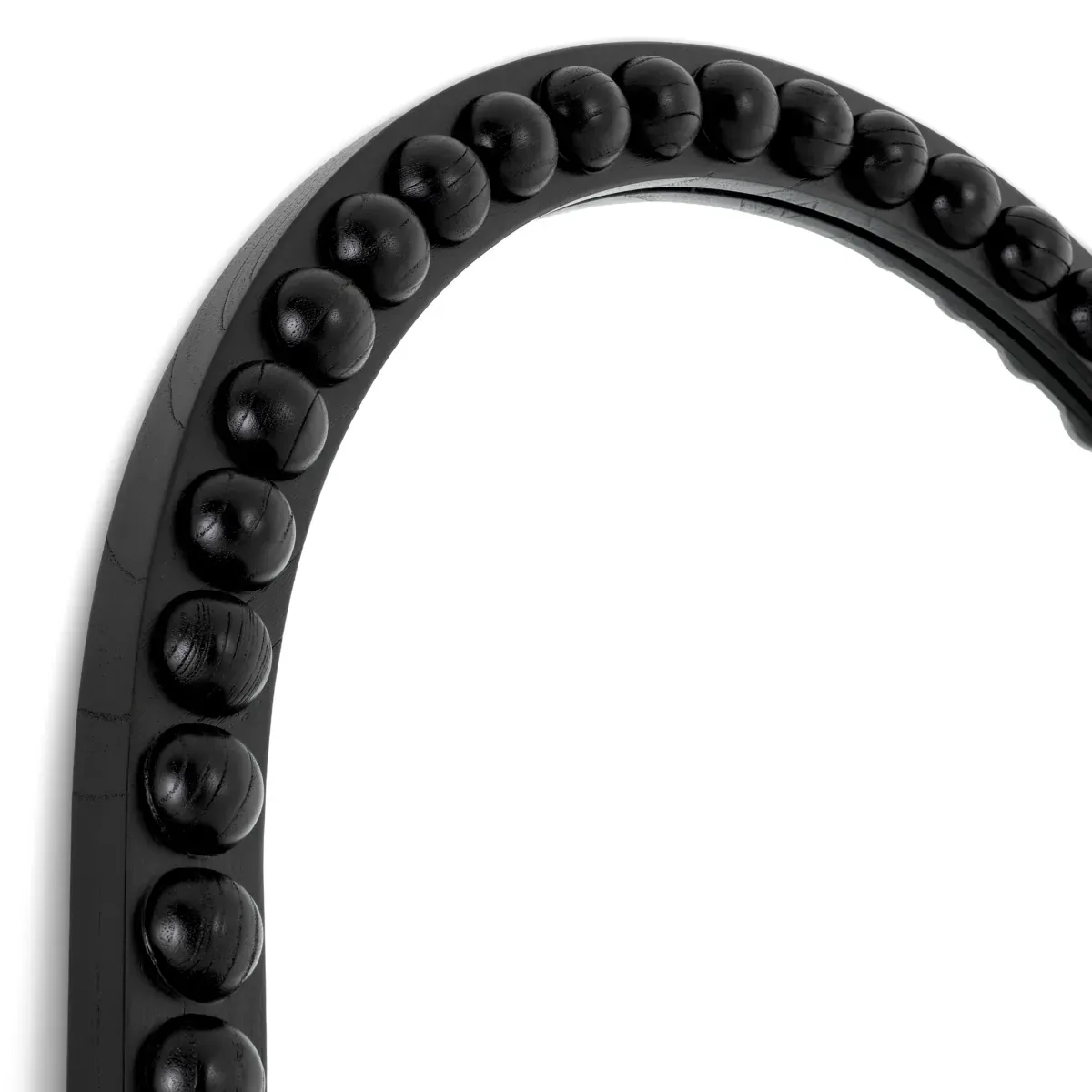 Schwarzer Bodenspiegel, der durch einen skulpturalen Massivholzrahmen mit halbrunden Details für architektonische Tiefe definiert ist. Dieser luxuriöse Bodenspiegel erreicht eine beeindruckende Höhe von 245 cm und sorgt für eine beeindruckende visuelle Präsenz. Er ist in klassischem Schwarz gehalten und unterstreicht das Licht und das räumliche Gleichgewicht in raffinierten Interieurs. Der luxuriöse Bodenspiegel verfügt über eine großzügige sichtbare Spiegelfläche für eine Reflexion in voller Länge. Er wurde für den Innenbereich mit einem sicheren Aufhängesystem mit französischen Klammern entworfen und eignet sich ideal für stilvolle Wohnräume, Ankleidebereiche oder formelle Flure.