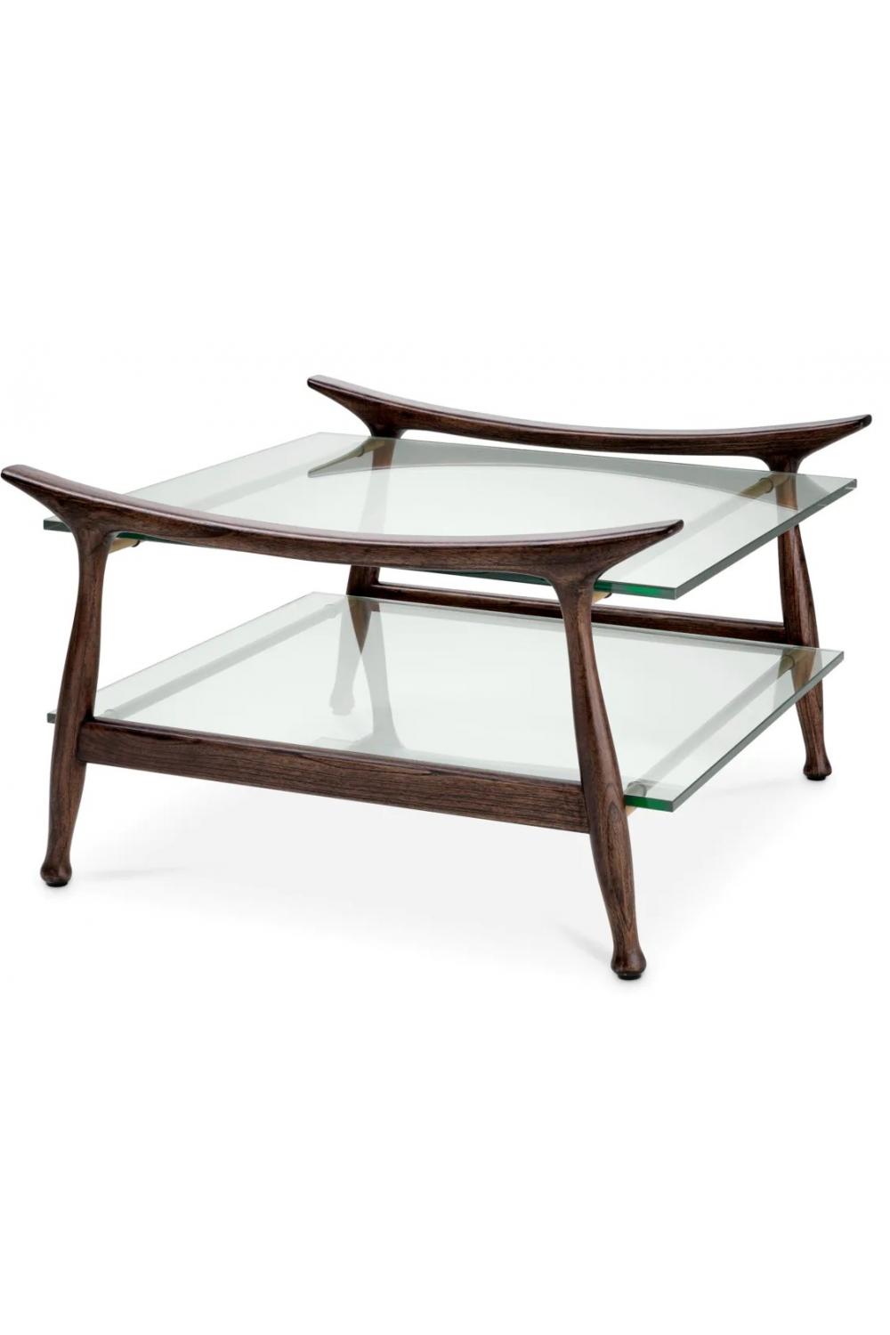 Luxuriöser, klassisch brauner Couchtisch mit Klarglas in rechteckiger Form für elegante Innenräume