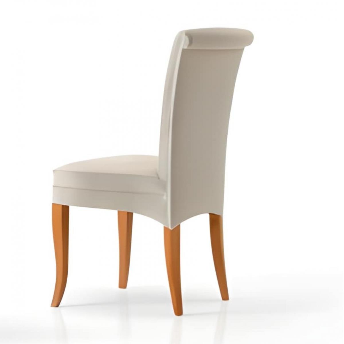 Ein eleganter, luxuriös gepolsterter Esszimmerstuhl mit einer hohen, geschwungenen Rückenlehne und anmutig geschwungenen Holzbeinen, der für raffinierte Interieurs entworfen wurde und die luxuriösen Stühle für Esszimmer mit zeitloser europäischer Raffinesse und maßgeschneidertem Komfort aufwertet.
