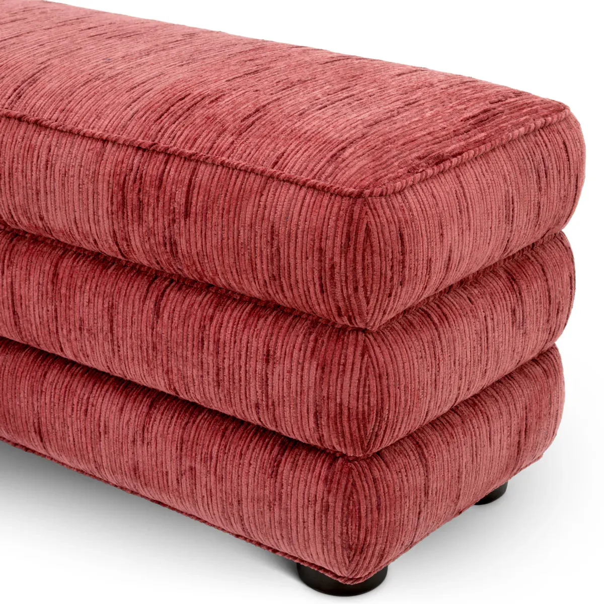 Luxusbank trifft auf modernen Minimalismus in diesem in staubigem Rosaton gepolsterten Möbelstück. Fachmännisch gefertigt und sorgfältig mit rotstichigem Stoff bezogen, setzt sie einen edlen Akzent in Schlafzimmer- und Wohnzimmerarrangements. Die vertikal gerippte Polsterstruktur verleiht eine maßgeschneiderte Tiefe, während der dicke, rechteckige Sitz einladenden Komfort für den täglichen Gebrauch bietet.