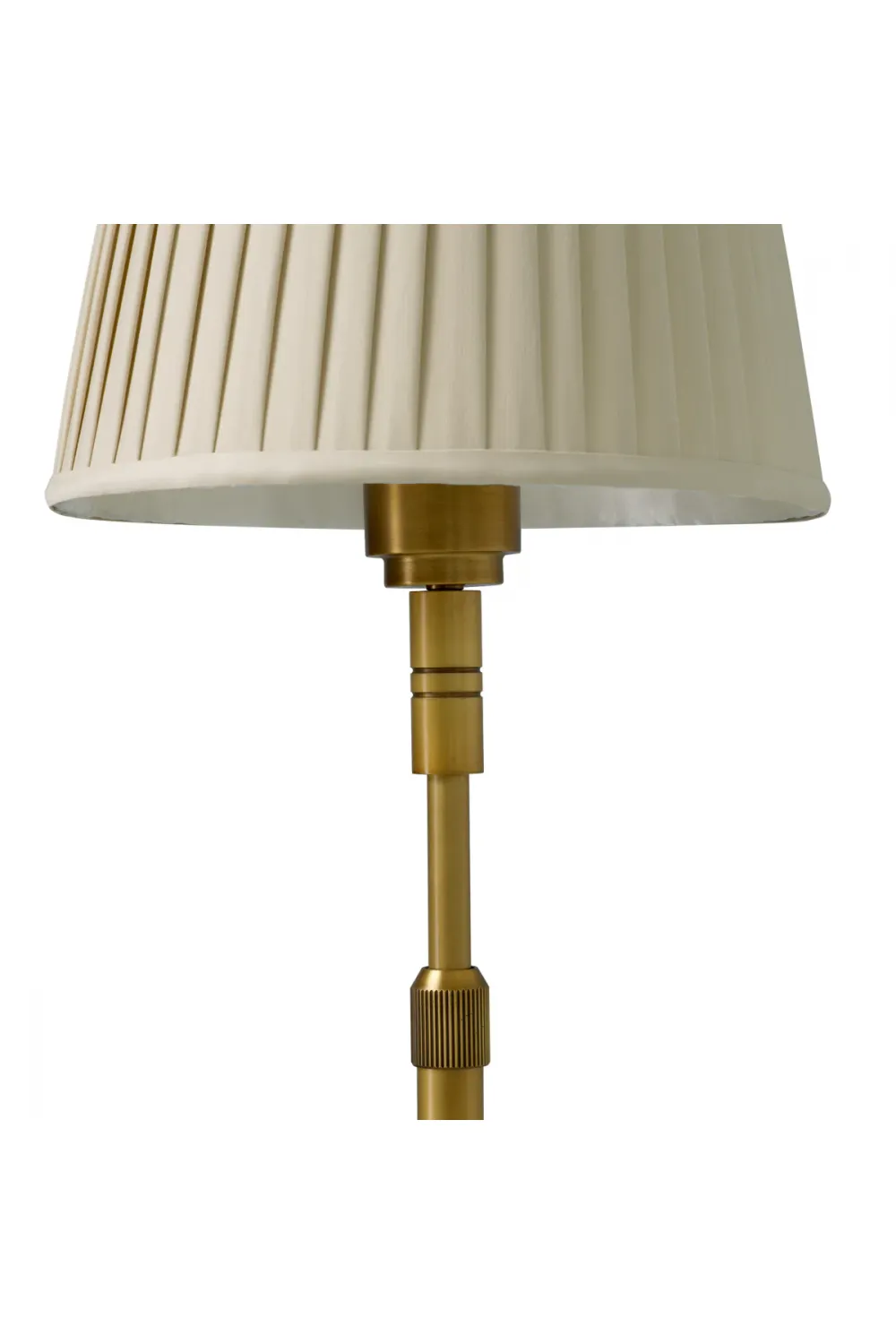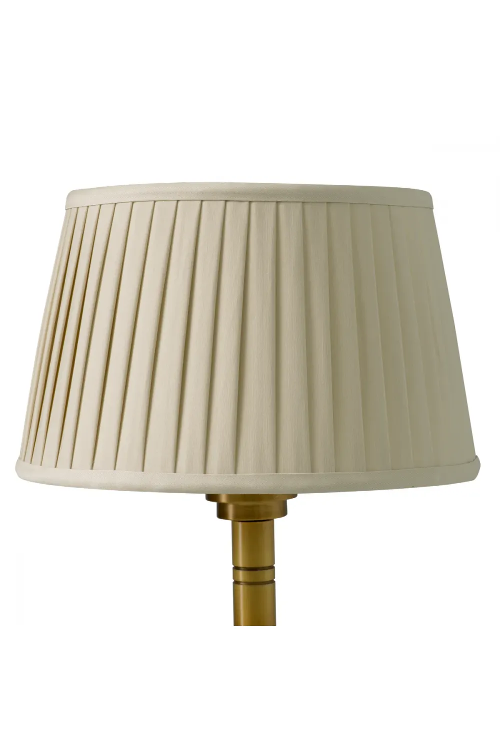 Luxuriöse Stehlampe mit Stoffschirm und Gestell aus gebürstetem Messing