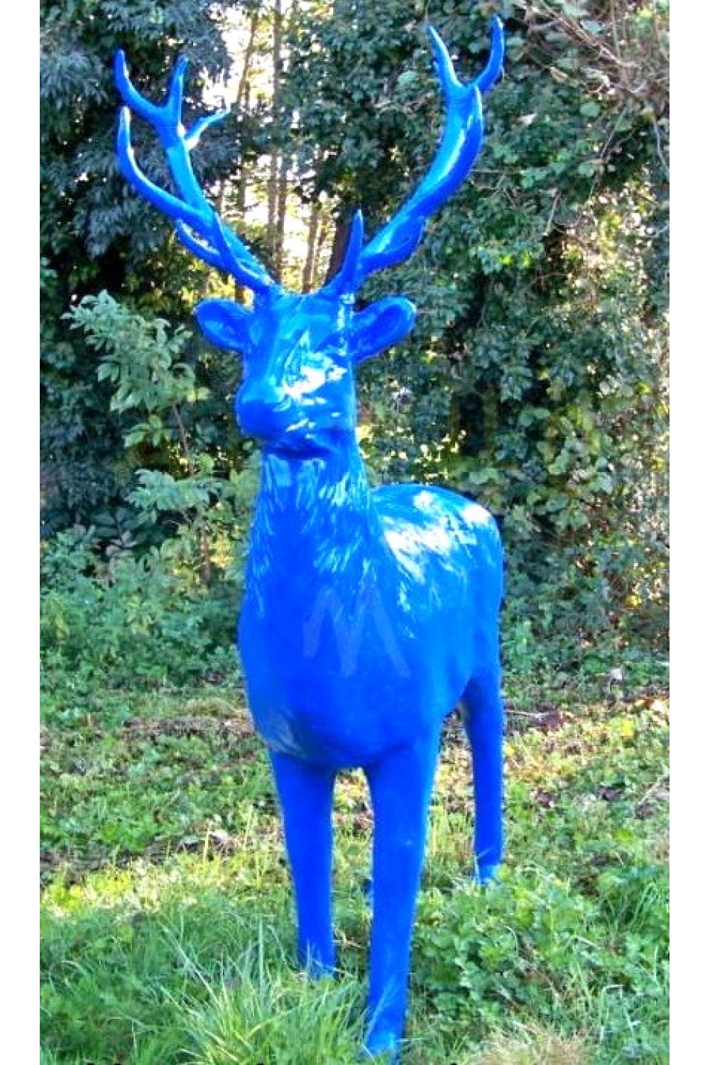 Eine majestätische Hirschskulptur, eingefangen in einer eindrucksvollen, lebensgroßen stehenden Pose, ausgeführt in einem einheitlichen, lebendigen Farbton. Dieses edle Stück ist als definitive große Gartenskulptur konzipiert. Erhältlich in Rot, Schokoladenbraun oder Himmelblau, dient es als auffällige und langlebige große Statue für den Außenbereich, perfekt für Parks, Anwesen und zeitgenössische Landschaften.
