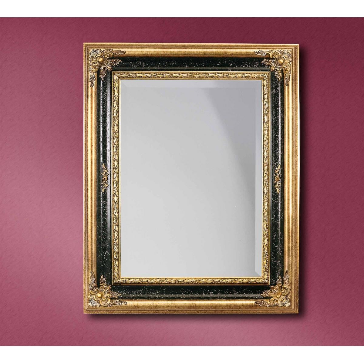 Luxus goldener Barock-Wandspiegel mit verzierten Blumenschnitzereien in den Ecken und glänzender schwarzer Mittelschicht von Luxury Group International