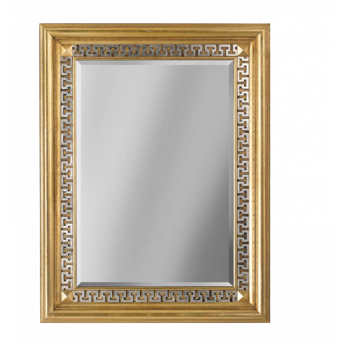 Luxus goldener Barock-Wandspiegel mit silbernem griechischem Schlüssel, dekorativer Umrandung und Eckornamenten von Luxury Group International