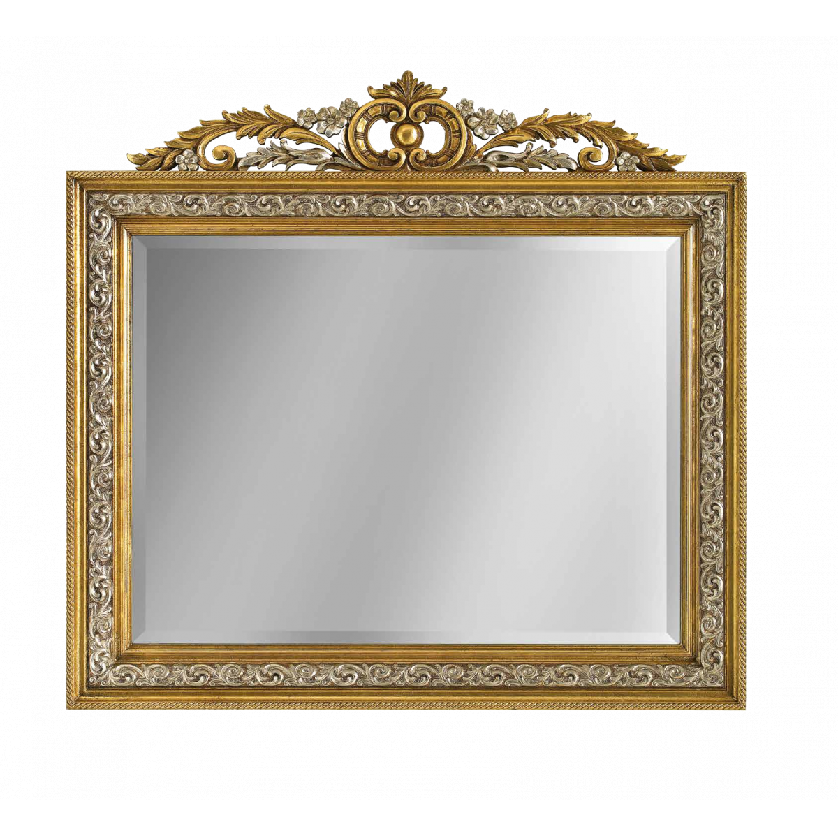 Luxus goldener Barock-Wandspiegel mit silbernem Relief-Rahmen mit skulpturaler Krone und Blättern von Luxury Group International