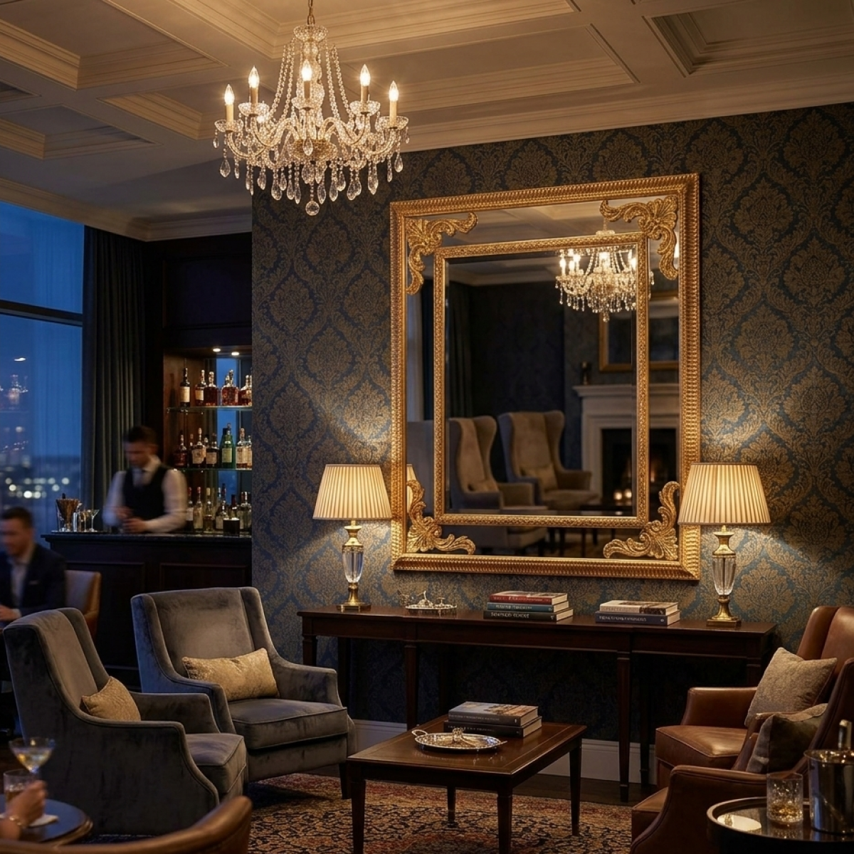 • Dieser luxuriöse Wandspiegel für das Wohnzimmer vergrößert den visuellen Raum dramatisch und reflektiert das natürliche Licht, um Wärme und Erhabenheit zu schaffen.