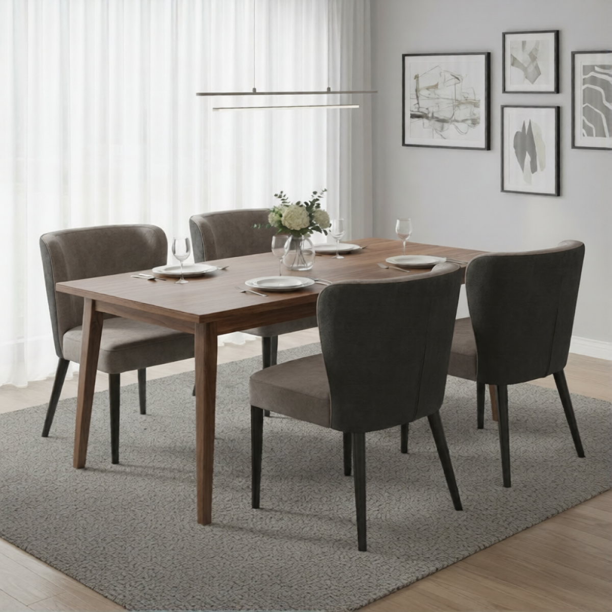 Innerhalb der kuratierten Kollektionen von Luxus-Esszimmerstühlen zeichnet sich dieses Modell durch seine raffinierte zweifarbige Ästhetik und minimalistische Präzision aus. Der Kontrast zwischen grauem Samt und anthrazitfarbenen Details verstärkt seine skulpturale Präsenz und macht ihn sowohl für intime Essbereiche als auch für ausgedehnte formelle Einrichtungen geeignet. Für ein harmonisches Esszimmerarrangement lässt er sich wunderbar mit dem gepolsterten Luxury Blush Pink Dining Armchair mit skulpturierten Armlehnen und schwarzen Holzbeinen kombinieren, wodurch ein vielschichtiges Zusammenspiel von kräftigen und weichen Tönen entsteht.
