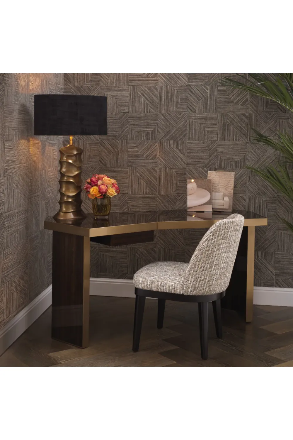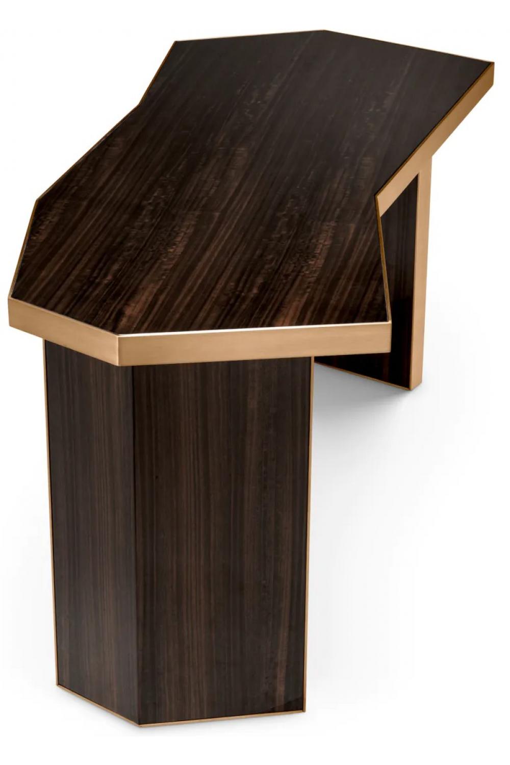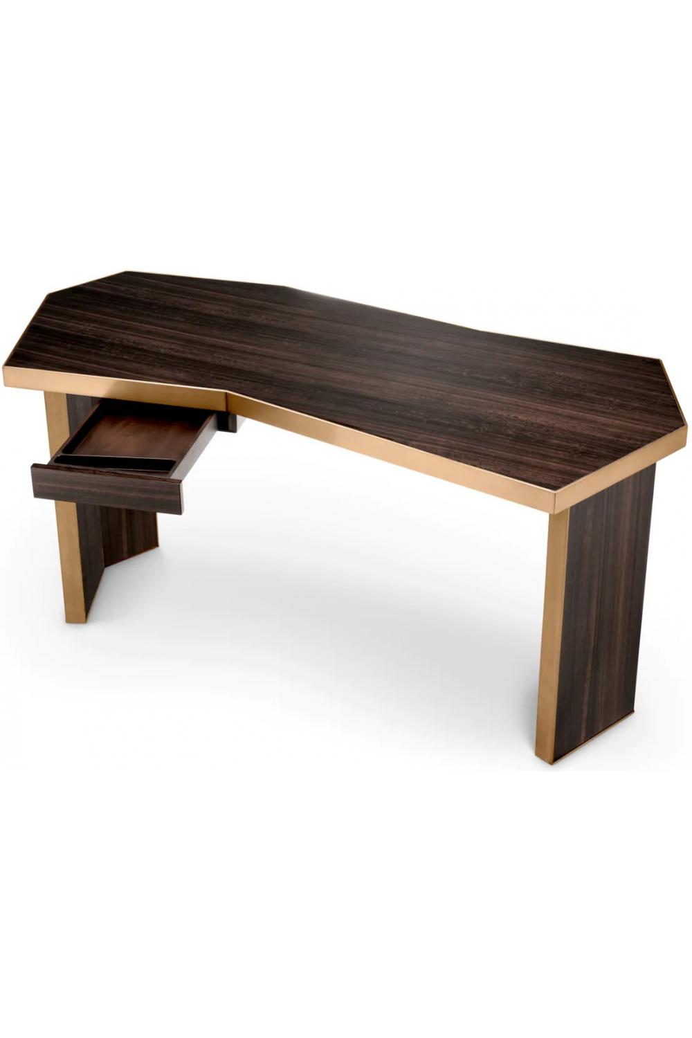 Luxuriöser Hochglanz-Furnier-Schreibtisch mit gebürstetem Messingrand – ein Statement-Stück für anspruchsvolle Innenräume