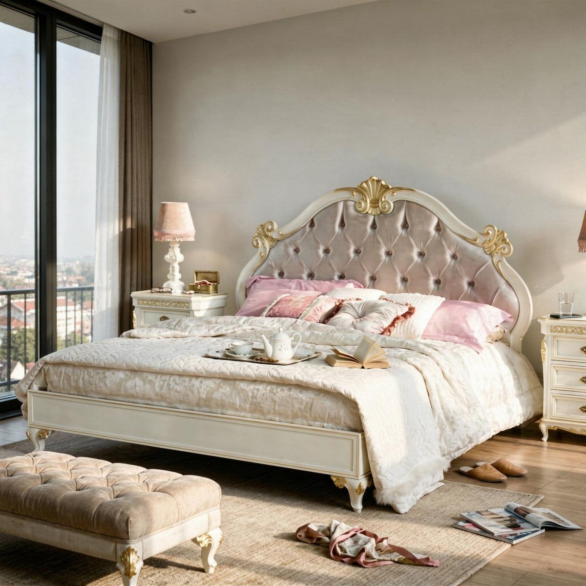 Unsere Luxusbetten vereinen üppige Polsterungen, kunstvoll geschnitzte Holzrahmen und opulente barocke Details zu majestätischen Blickfängen, die anspruchsvolle Schlafzimmer mit klassischer europäischer Pracht und dauerhaftem luxuriösem Komfort verwandeln.