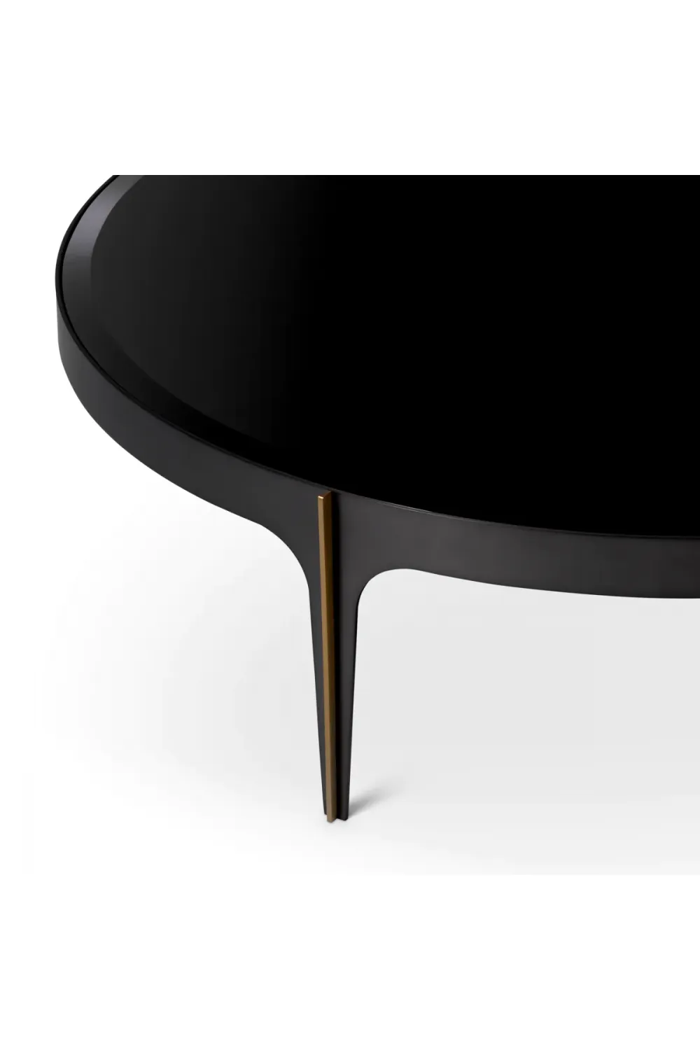 Dieser luxuriöse Couchtisch ist aus hochwertigen Materialien gefertigt und wird in raffinierten Oberflächenkombinationen angeboten, die seinen modernen Charakter unterstreichen. Zu den Optionen gehören ein Couchtisch aus gebürstetem Messing mit abgeschrägtem Spiegelglas, der leuchtende Eleganz und reflektierende Tiefe bietet, sowie ein Couchtisch in Bronzeoptik mit gebürstetem Messingrahmen und schwarzem abgeschrägtem Glas, der eine reichere, dramatischere Ästhetik bietet. Die abgeschrägte Glasplatte sorgt für Raffinesse, während sie Licht und Form akzentuiert, und die eleganten Metalldetails an den Beinen unterstreichen die Handwerkskunst hinter dem Design.