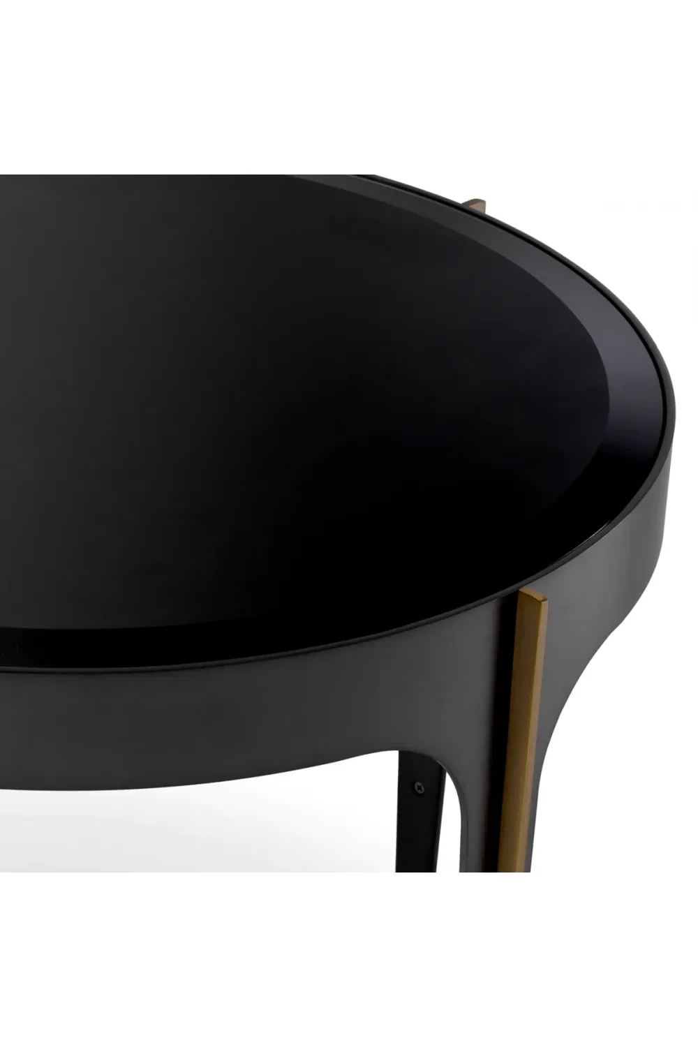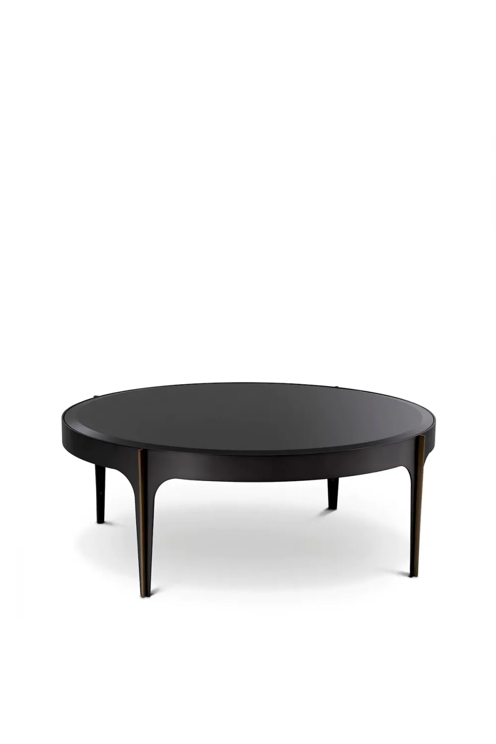 Dieser luxuriöse Couchtisch ist in sorgfältig ausgewählten Oberflächenkombinationen erhältlich, die seine zeitlose Anziehungskraft unterstreichen. Zu den Optionen gehören ein Couchtisch aus gebürstetem Messing mit abgeschrägtem Spiegelglas, der leuchtende Eleganz und reflektierende Tiefe bietet, sowie ein Couchtisch in Bronzeoptik mit gebürstetem Messingrahmen und schwarzem abgeschrägtem Glas, der einen stärkeren, dramatischeren Kontrast bietet. Für einen zeitgenössischen Ausdruck sorgt der Couchtisch aus gebürstetem Stahl mit gebürsteten Messingakzenten und schwarzem abgeschrägtem Glas, der subtile Raffinesse einführt und gleichzeitig die skulpturale Identität des Tisches beibehält. Jede Ausführung unterstreicht das Zusammenspiel zwischen solider Metallkonstruktion und raffinierten Glasdetails.