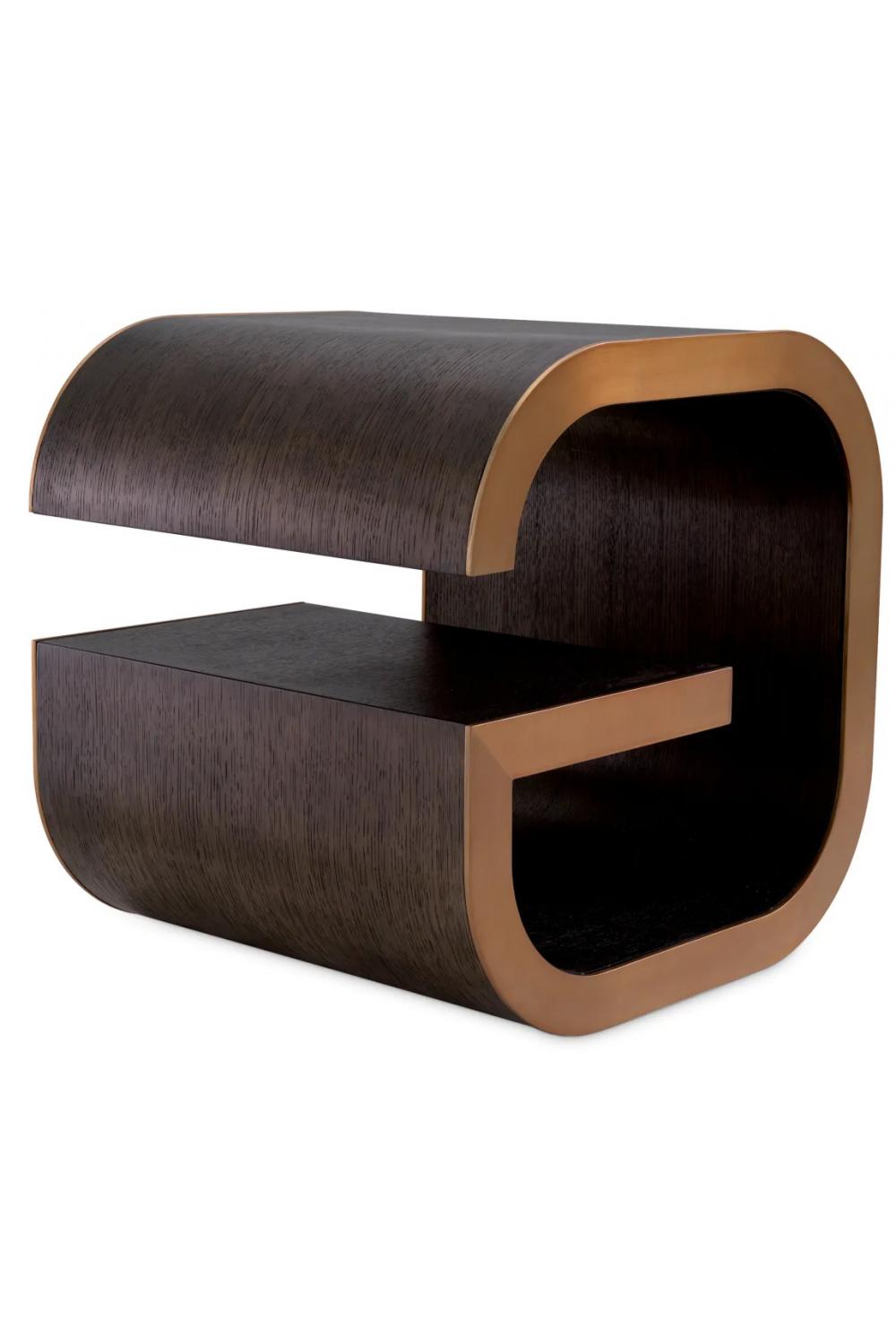Startseite > Möbel für das Wohnzimmer > Luxus-Sideboards & Konsolen > Luxuriöser G-förmiger Beistelltisch aus Eiche Mokka und Messing
