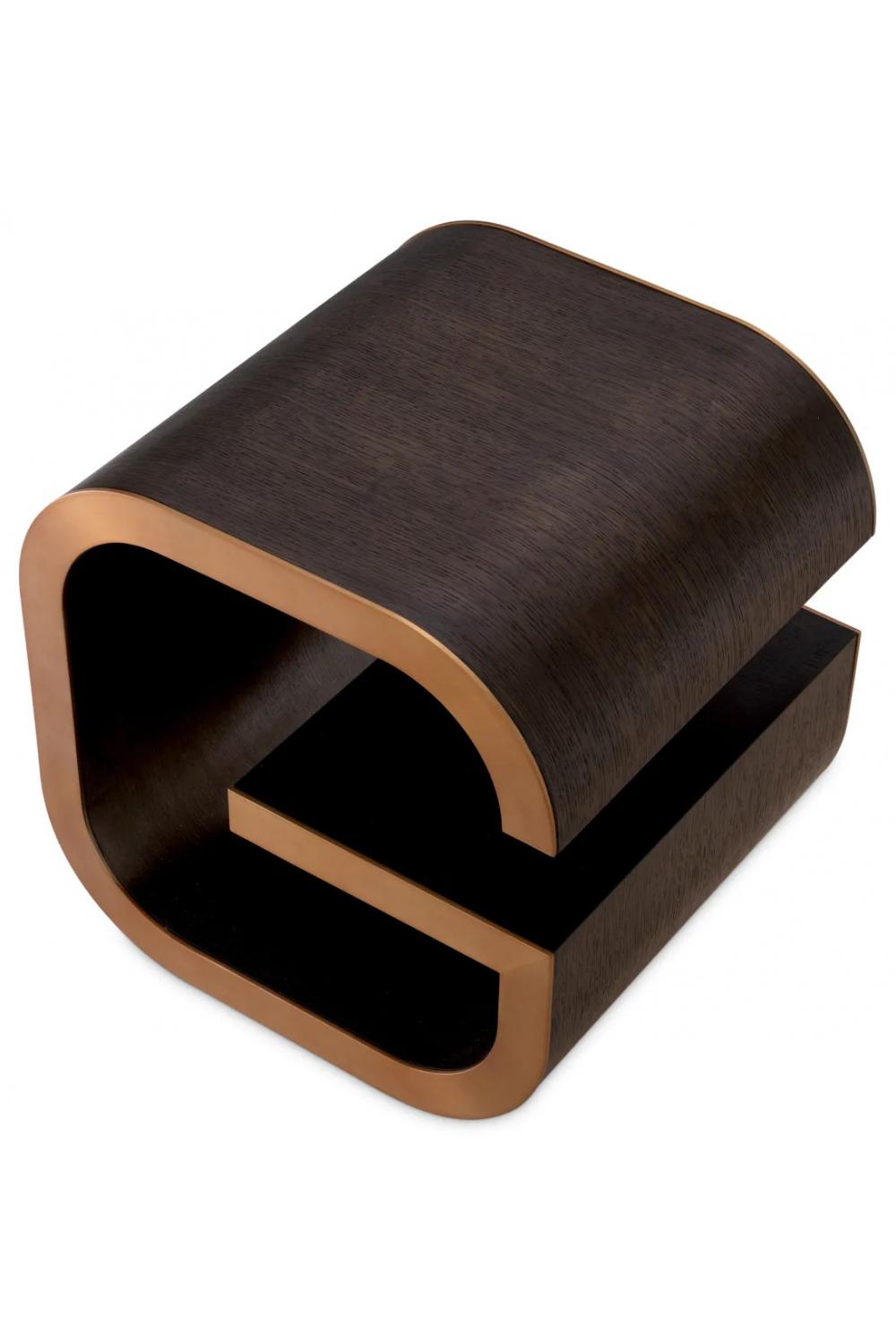 Luxuriöser G-förmiger Beistelltisch aus Eiche Mokka und Messing