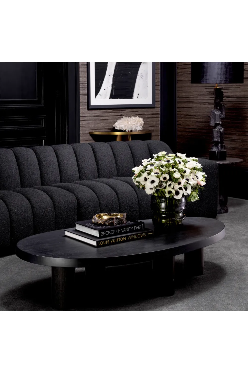 Luxuriöser, moderner, schwarzer, ovaler Couchtisch aus Holz und hochwertigen Materialien