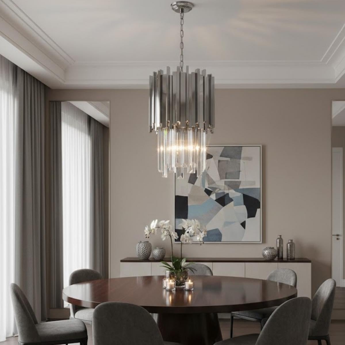 Der luxuriöse Modern Tiered led Crystal Chandelier ist ein raffinierter Ausdruck des zeitgenössischen Art-Deco-Designs. Mit einem polierten Metallrahmen in Gold-, Silber- oder Chromausführung präsentiert dieser Kronleuchter vertikale Kristallprismen, die in einer strukturierten, stufenförmigen Formation angeordnet sind. Die geschichtete Trommelsilhouette verstärkt Tiefe und Symmetrie, während die integrierte Beleuchtung durch jedes Kristallelement reflektiert wird, um schimmernde Lichtbewegungen zu erzeugen. Kompakt und doch dramatisch, verleiht dieser luxuriöse Modern Tiered led Crystal Chandelier architektonische Präsenz, ohne den Raum zu überwältigen, was ihn ideal für anspruchsvolle Innenräume macht.