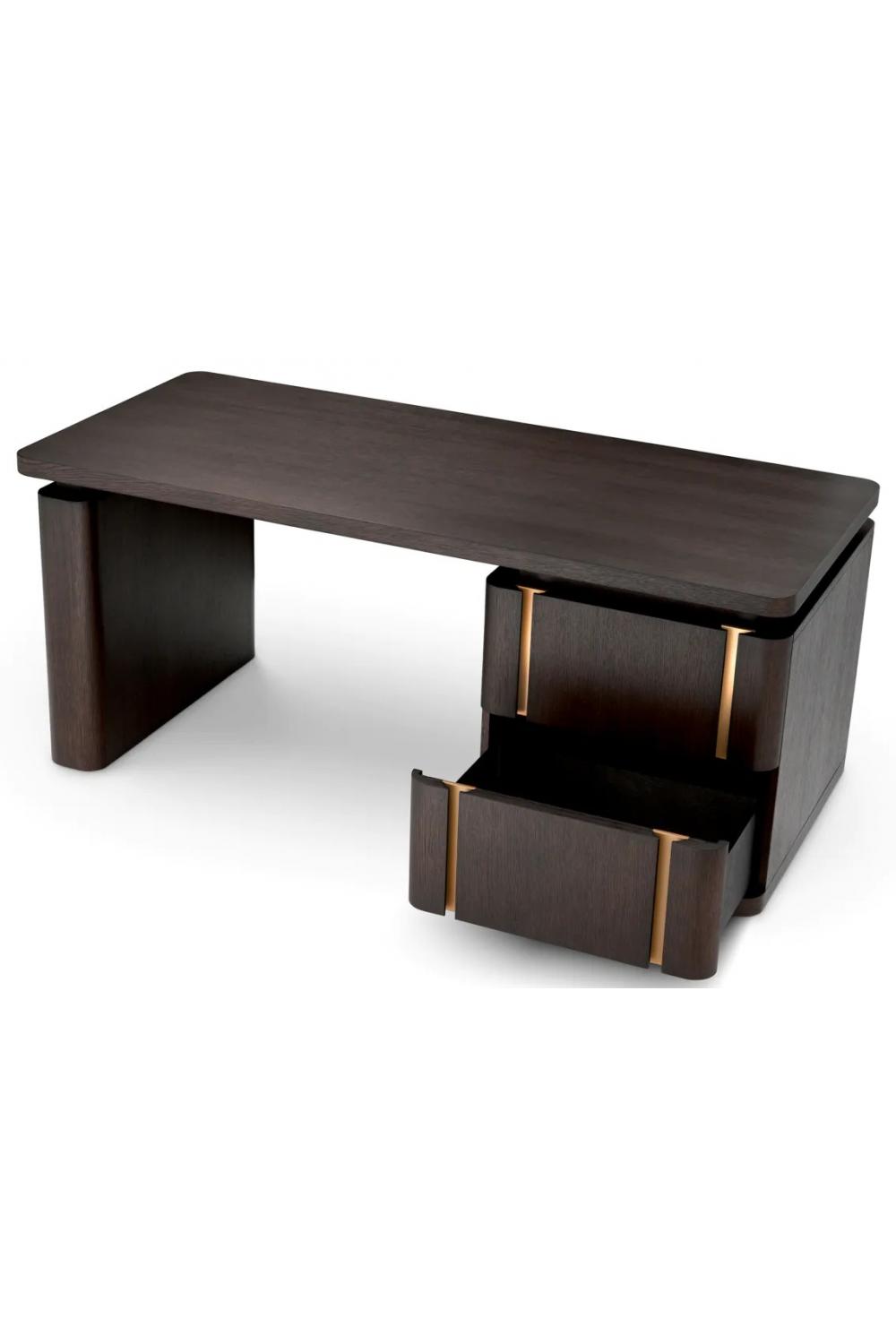 Luxuriöser Schreibtisch aus natürlichem Eichenfurnier mit Bronze-Finish