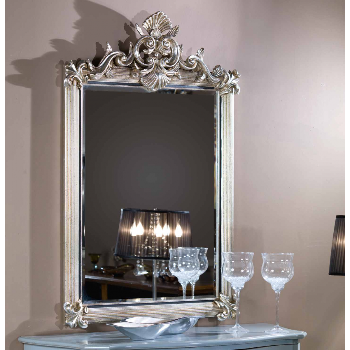 • Primärer Luxus-Barockspiegel mit silberner Grundierung und goldfarbener Krone